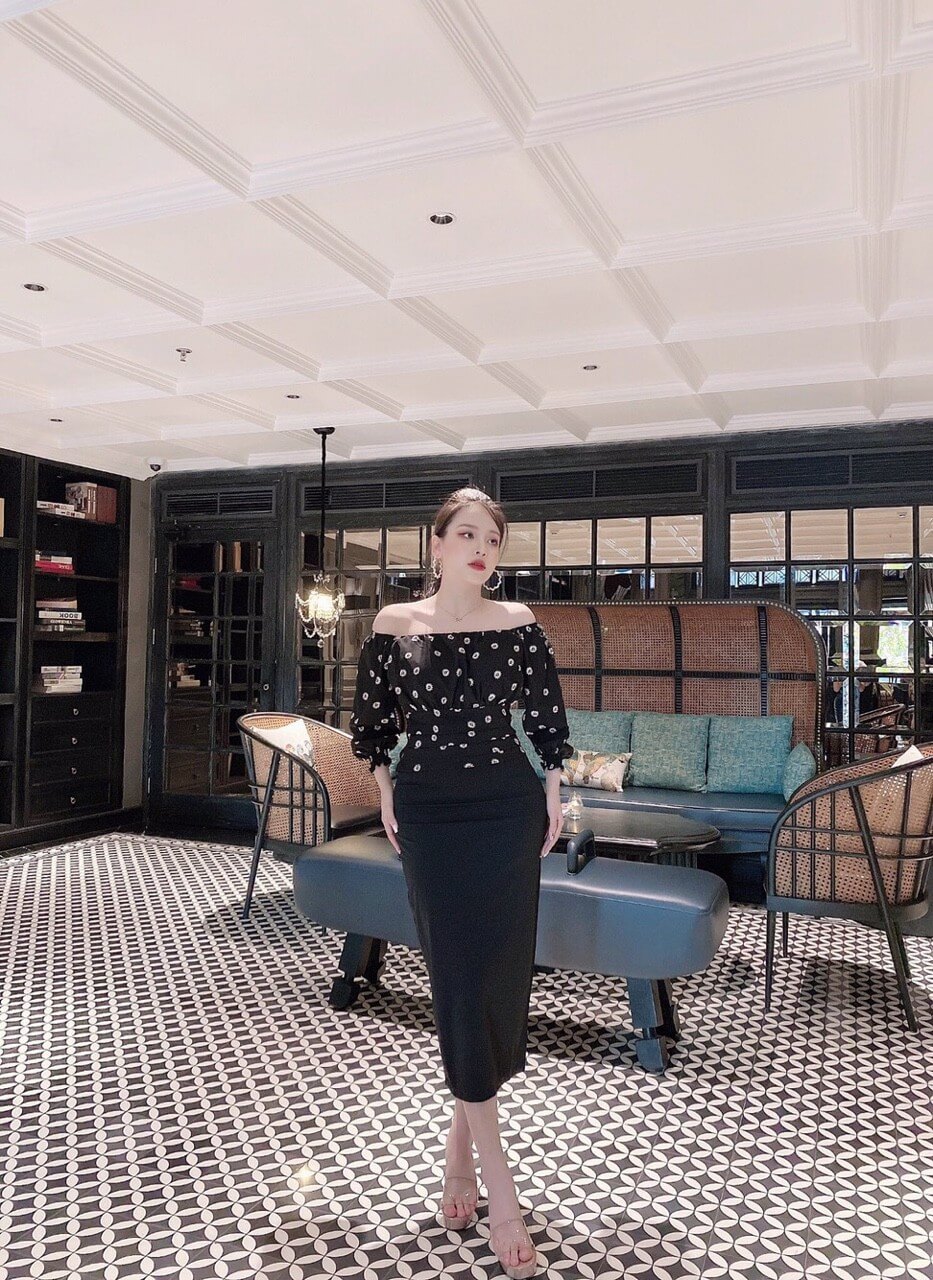 Đầm trễ vai mang lại vẻ quyến rũ, vừa kín đáo, vừa gợi cảm, che bắp tay to, khoe xương quai xanh, trẻ trung, nhìn đầy đặn hơn. Đặc biệt, thu hút người khác giới.