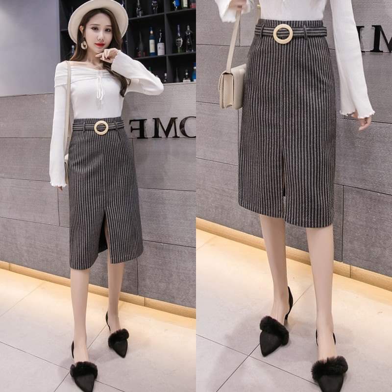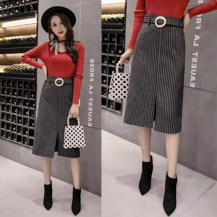 Chân váy công sở sọc kèm thắt lưng đẳng cấp quý cô:
