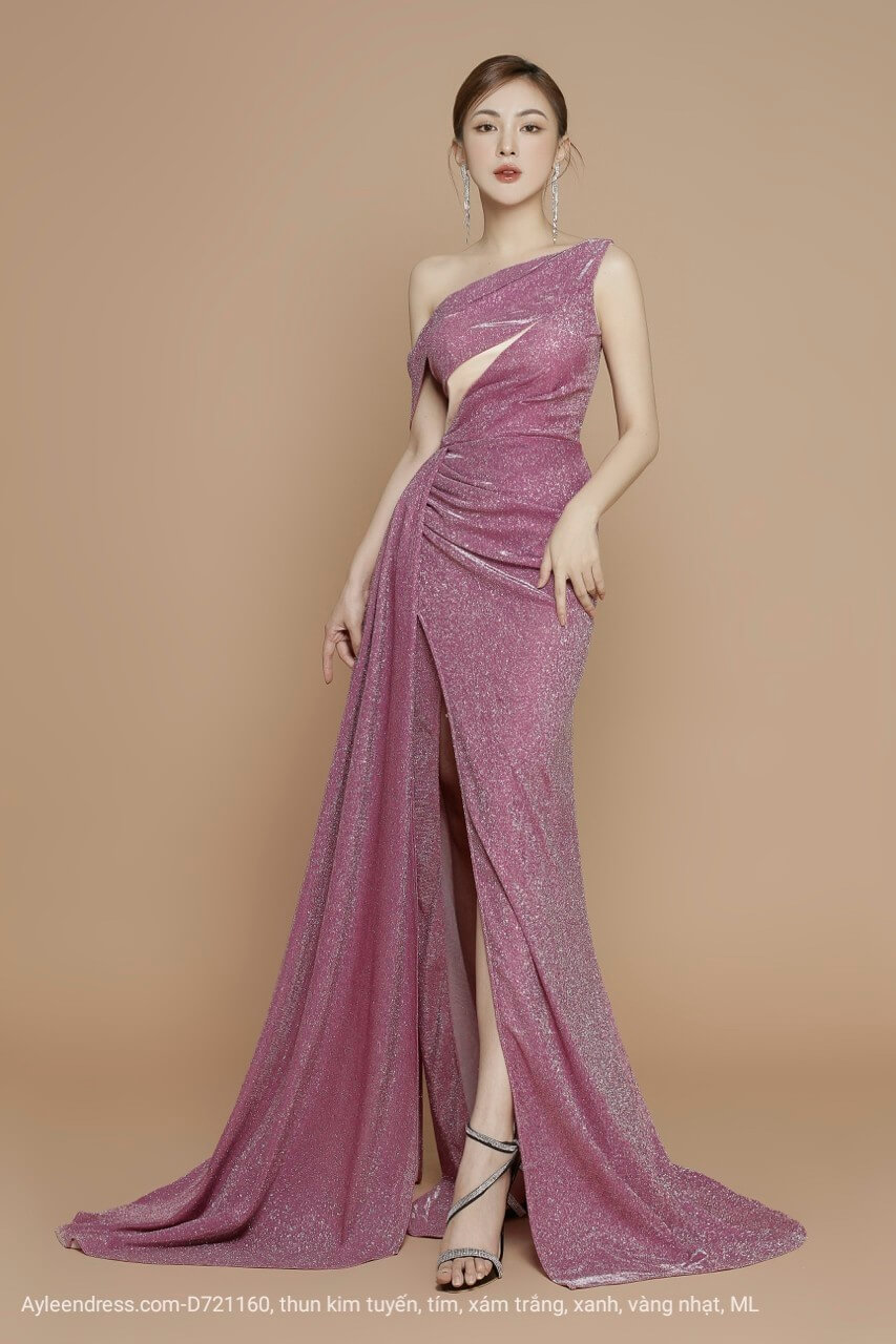 Dạ hội kim tuyến trễ vai nhún tà (bổ sung màu tím)