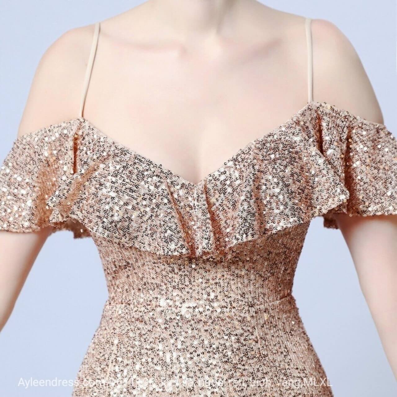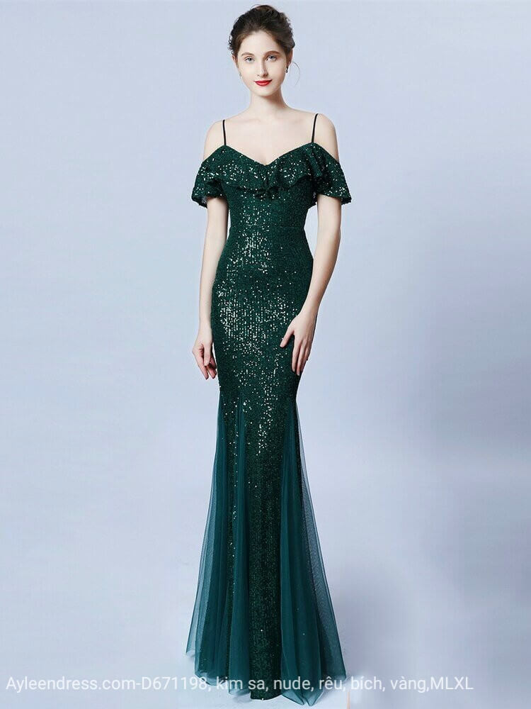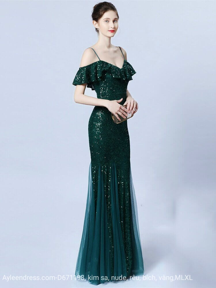 Dạ hội thun kim sa trễ vai hai dây