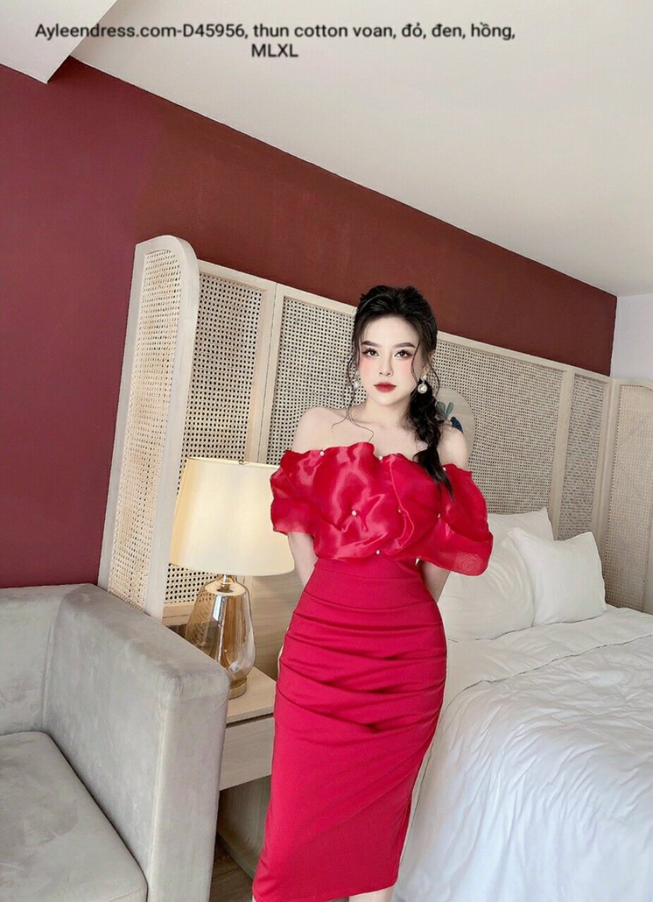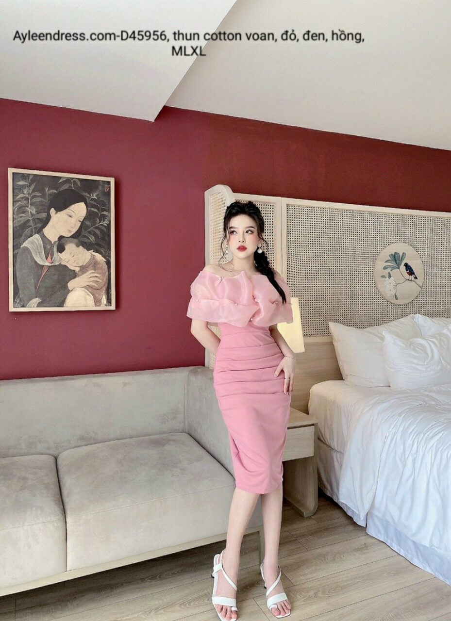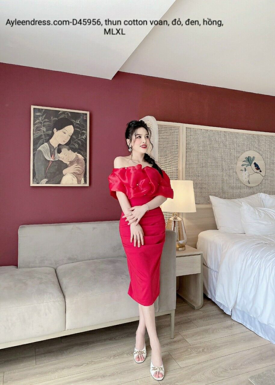 Đầm trễ vai mang lại vẻ quyến rũ, vừa kín đáo, vừa gợi cảm, che bắp tay to, khoe xương quai xanh, trẻ trung, nhìn đầy đặn hơn. Đặc biệt, thu hút người khác giới.