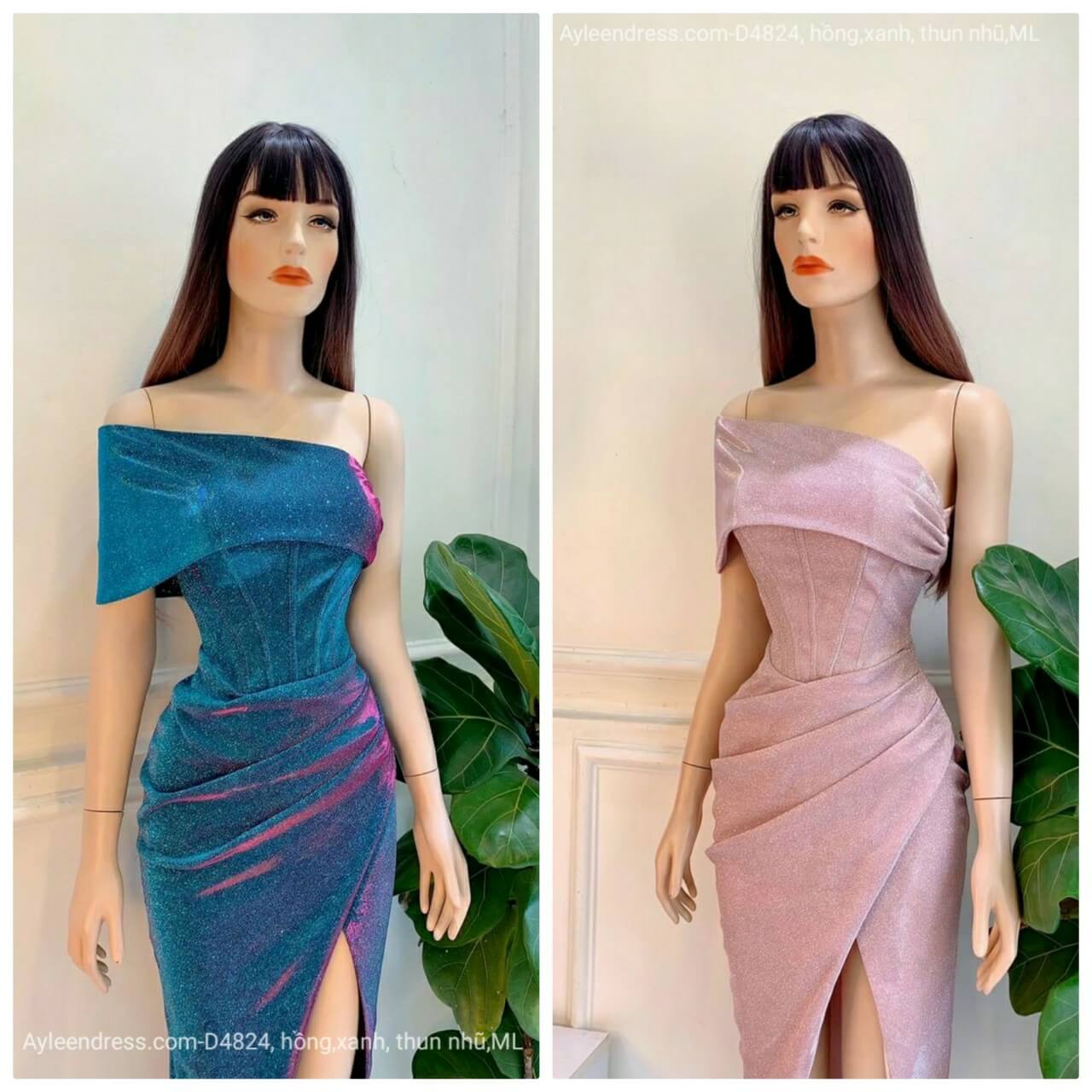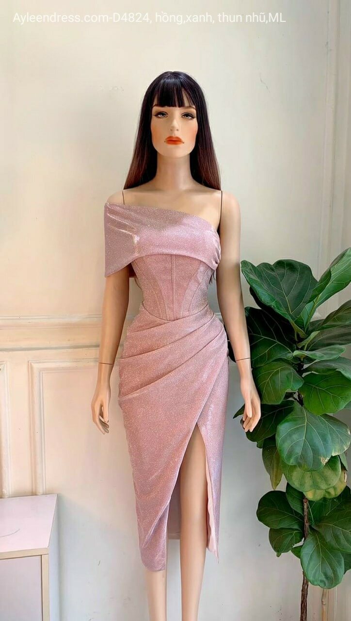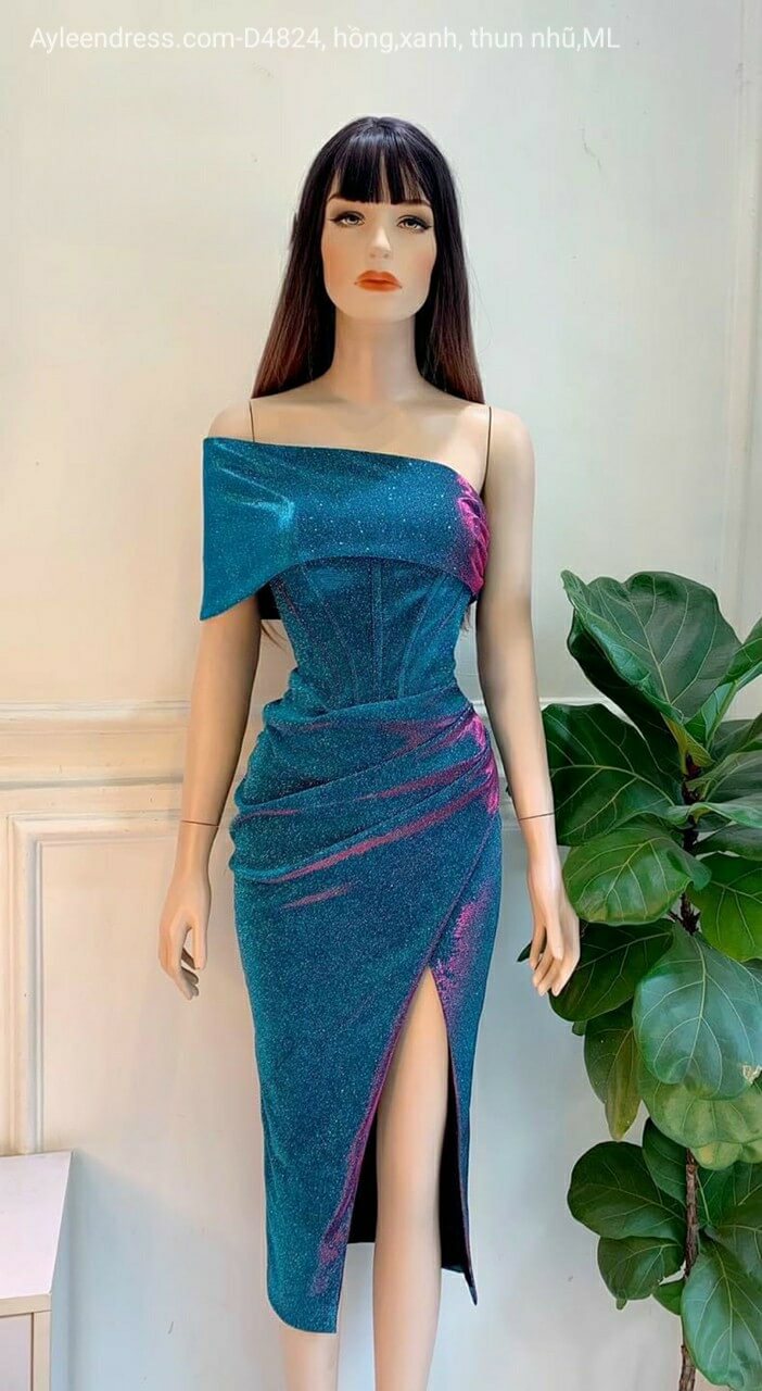 Đầm body dự tiệc nhũ lệch vai
