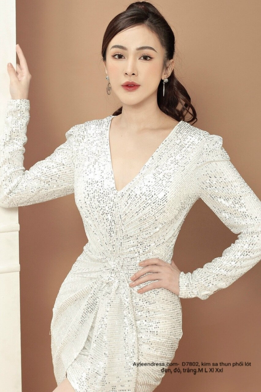 Đầm body ngắn kim sa tay dài cao cấp
