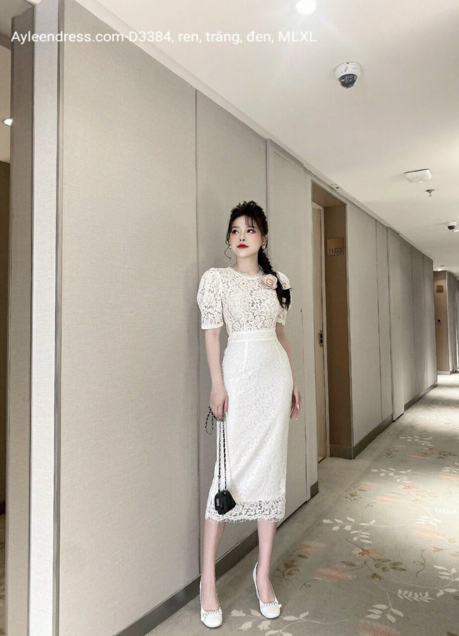 Đầm body ren cổ tròn tay lỡ