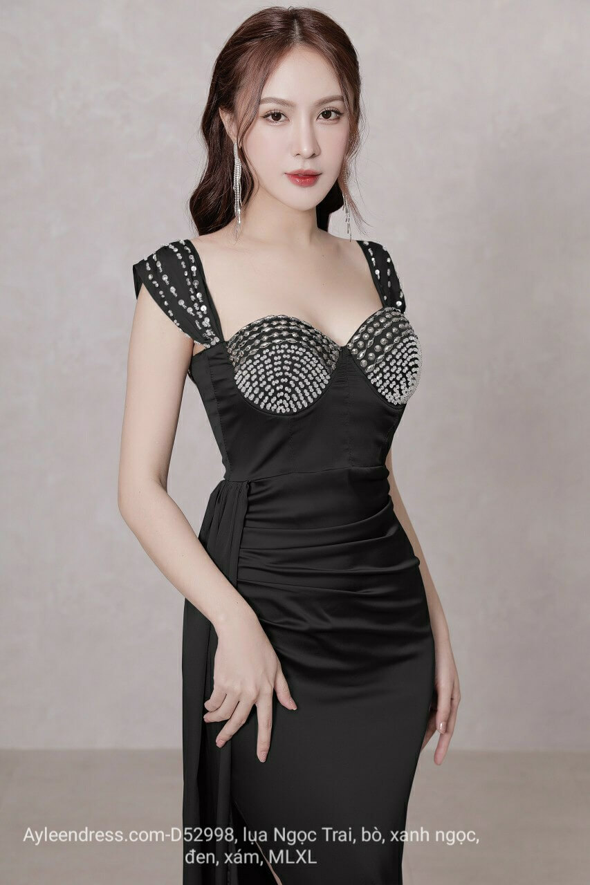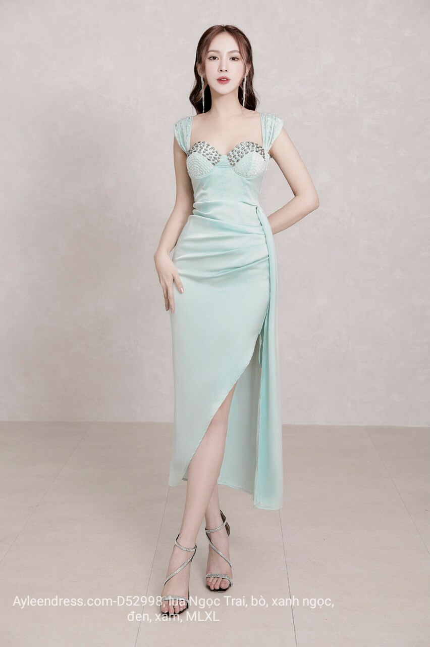 Đầm body xếp ly tà rời kết pha lê
