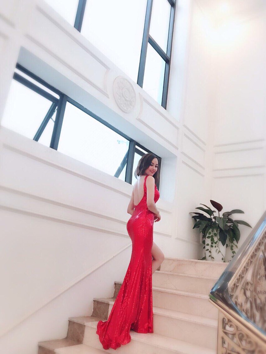 Đầm dạ hội cut out hở lưng màu đỏ