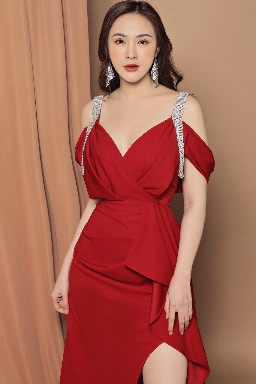 Đầm dạ hội hai dây kết pha lê trẻ trung