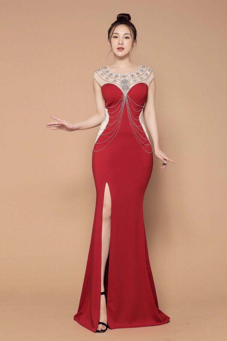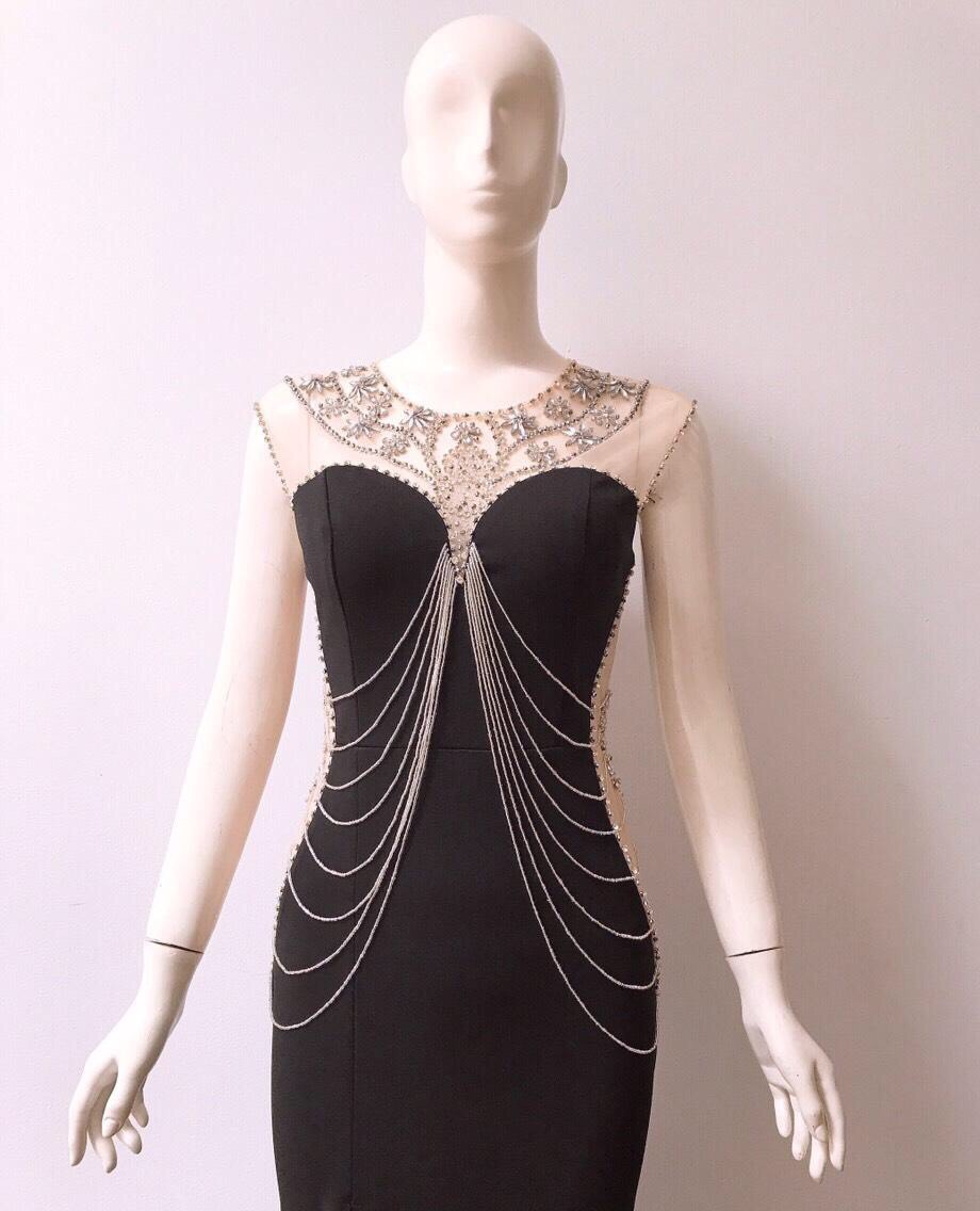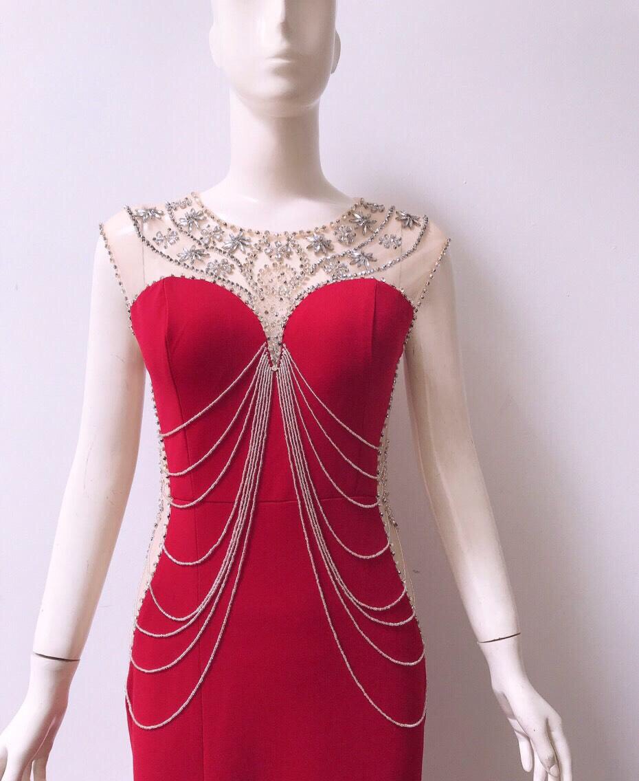 Đầm dạ hội kết pha lê chuỗi ngực và eo