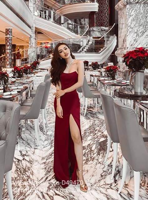 Đầm dạ hội kiểu cúp ngực xẻ tà cao