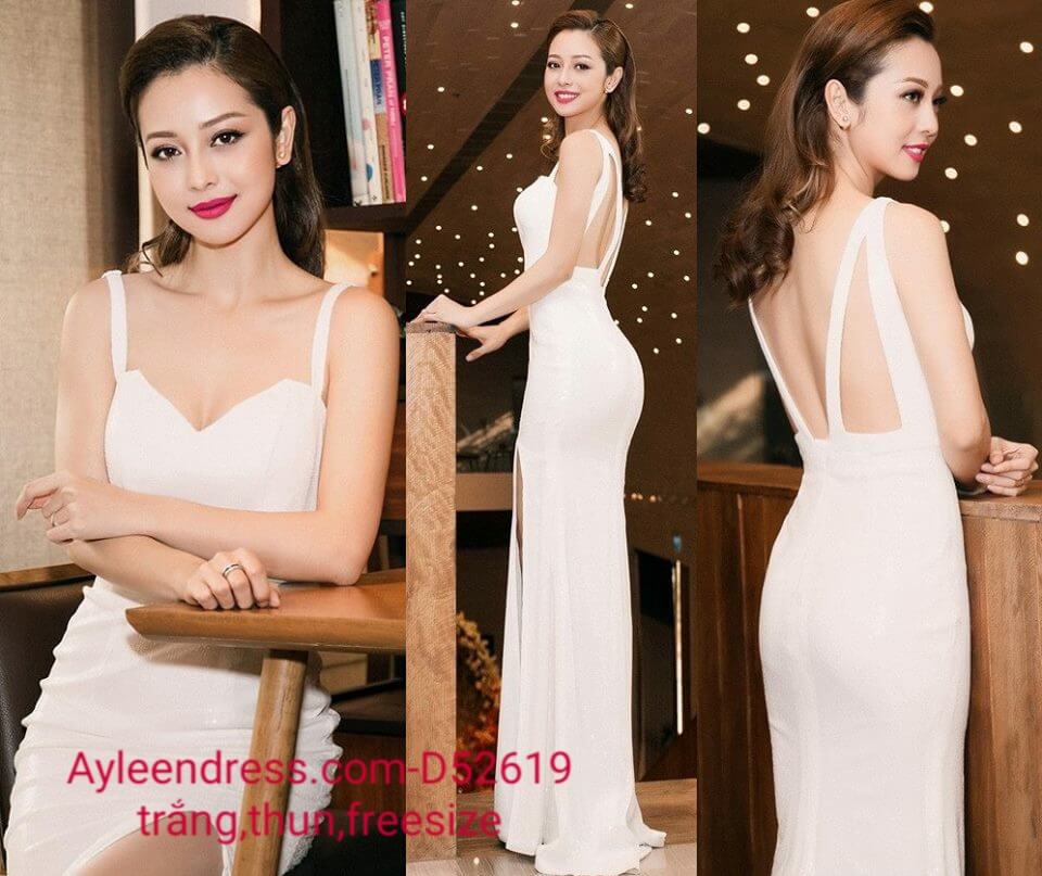 Đầm dạ hội kiểu hai dây cúp ngực hở lưng xẻ tà