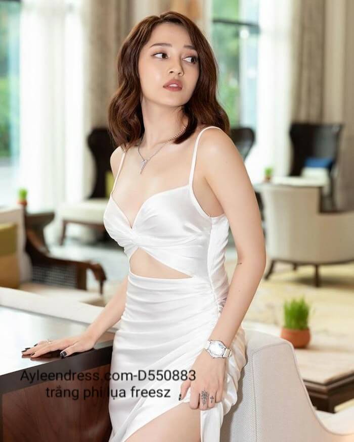 Đầm dạ hội kiểu hai dây cutout bụng xẻ tà