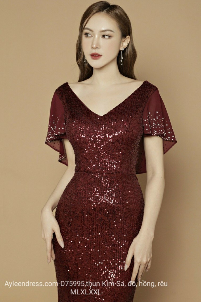 Đầm dạ hội kim sa thun tay choàng