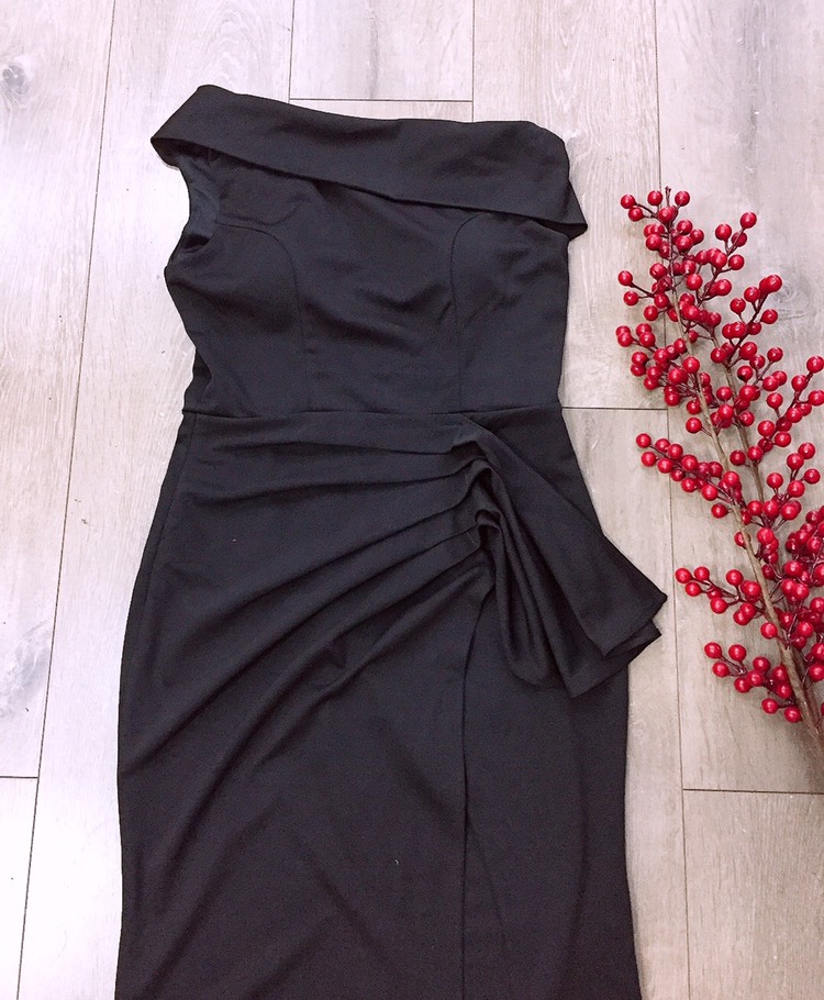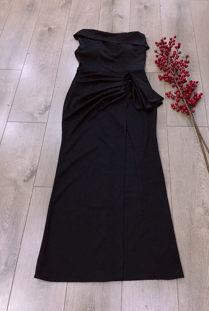 Đầm dạ hội màu đen xẻ tà nhúng eo