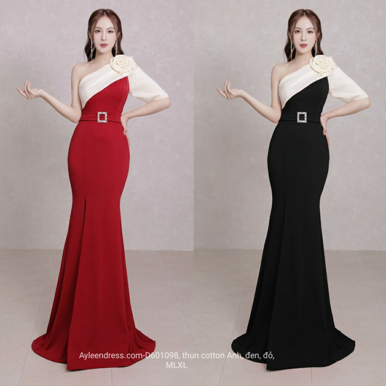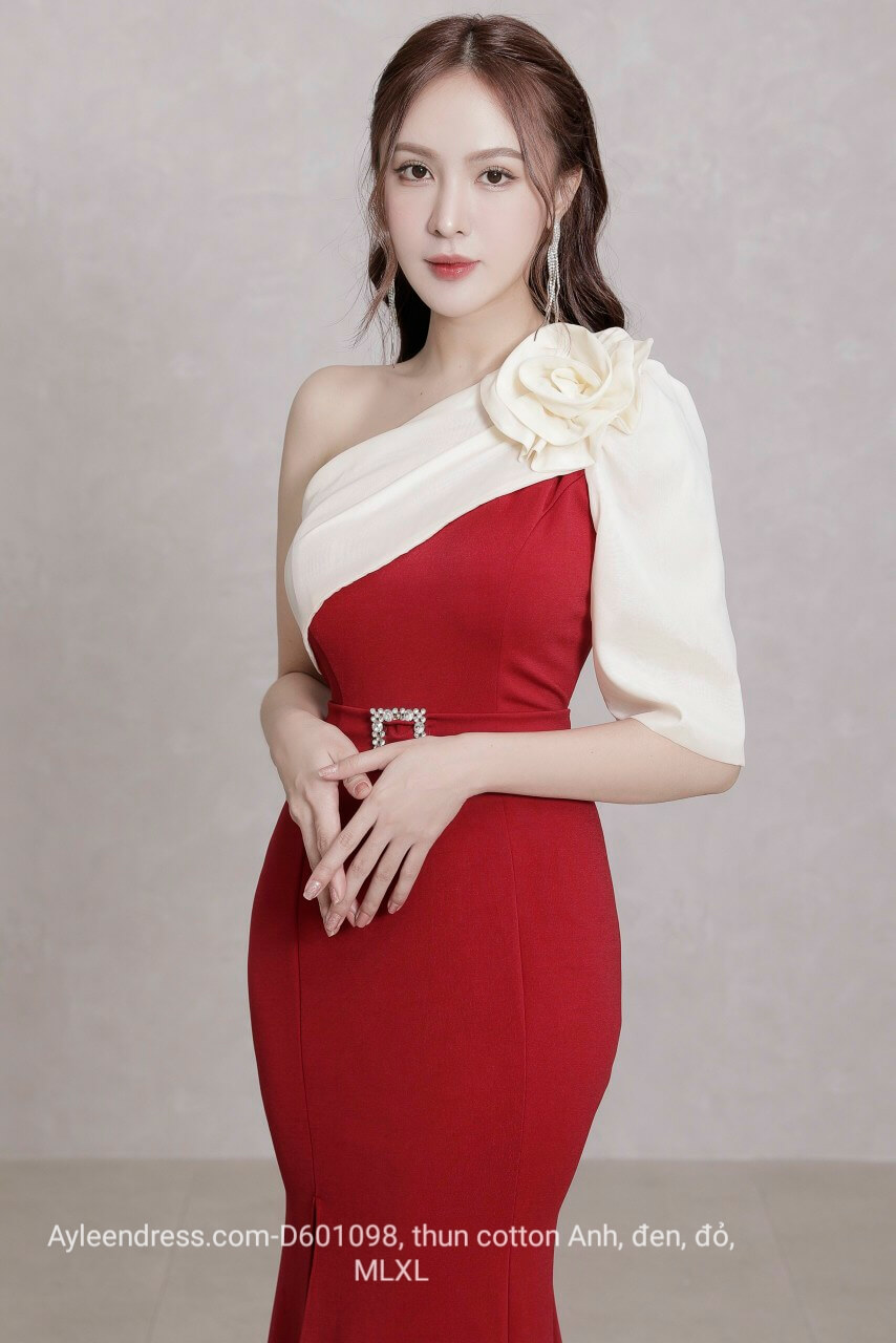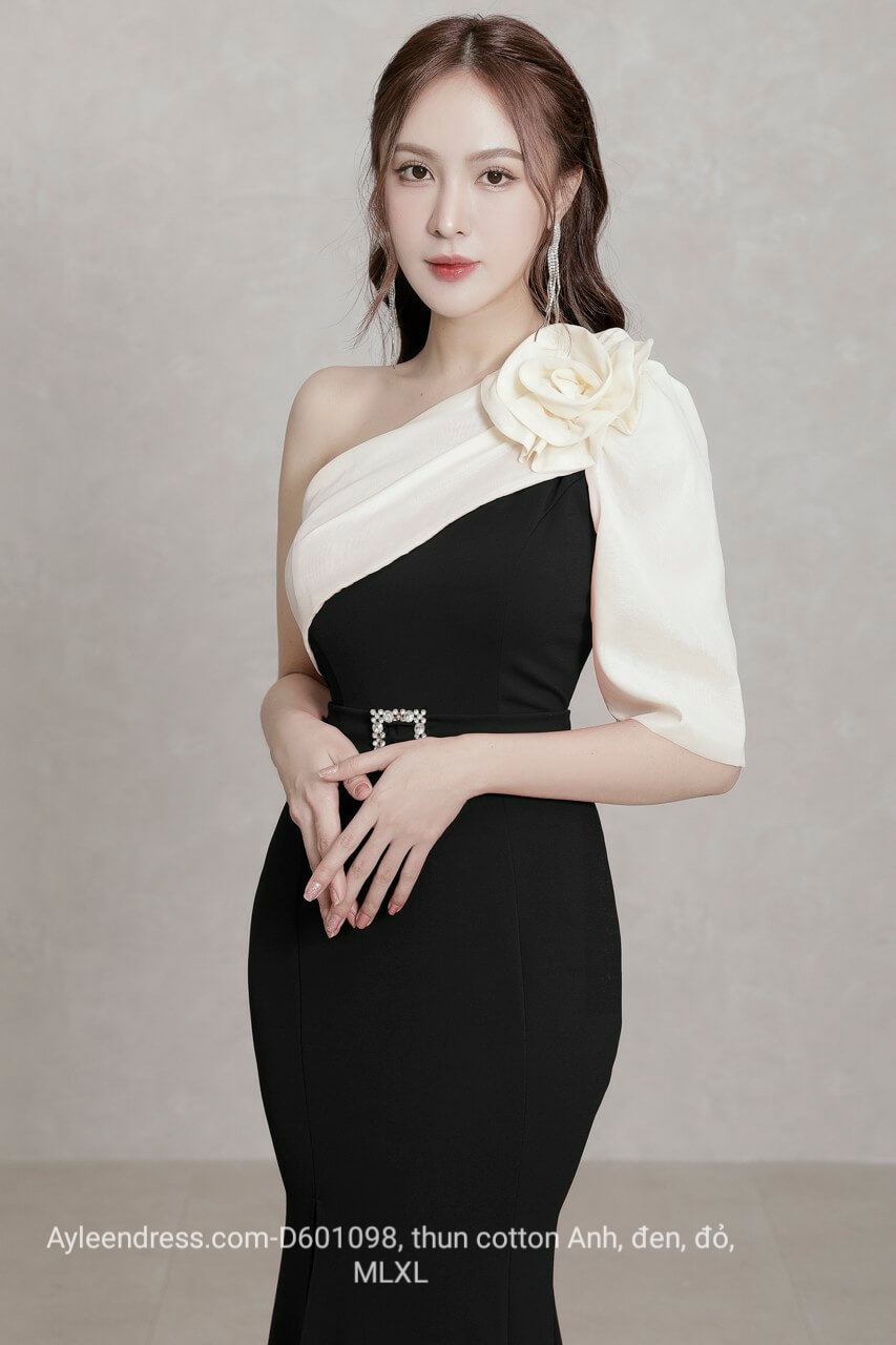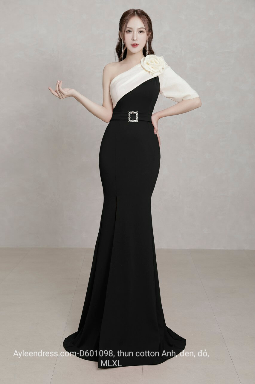 Đầm dạ hội ôm body lệch vai xoắn bông