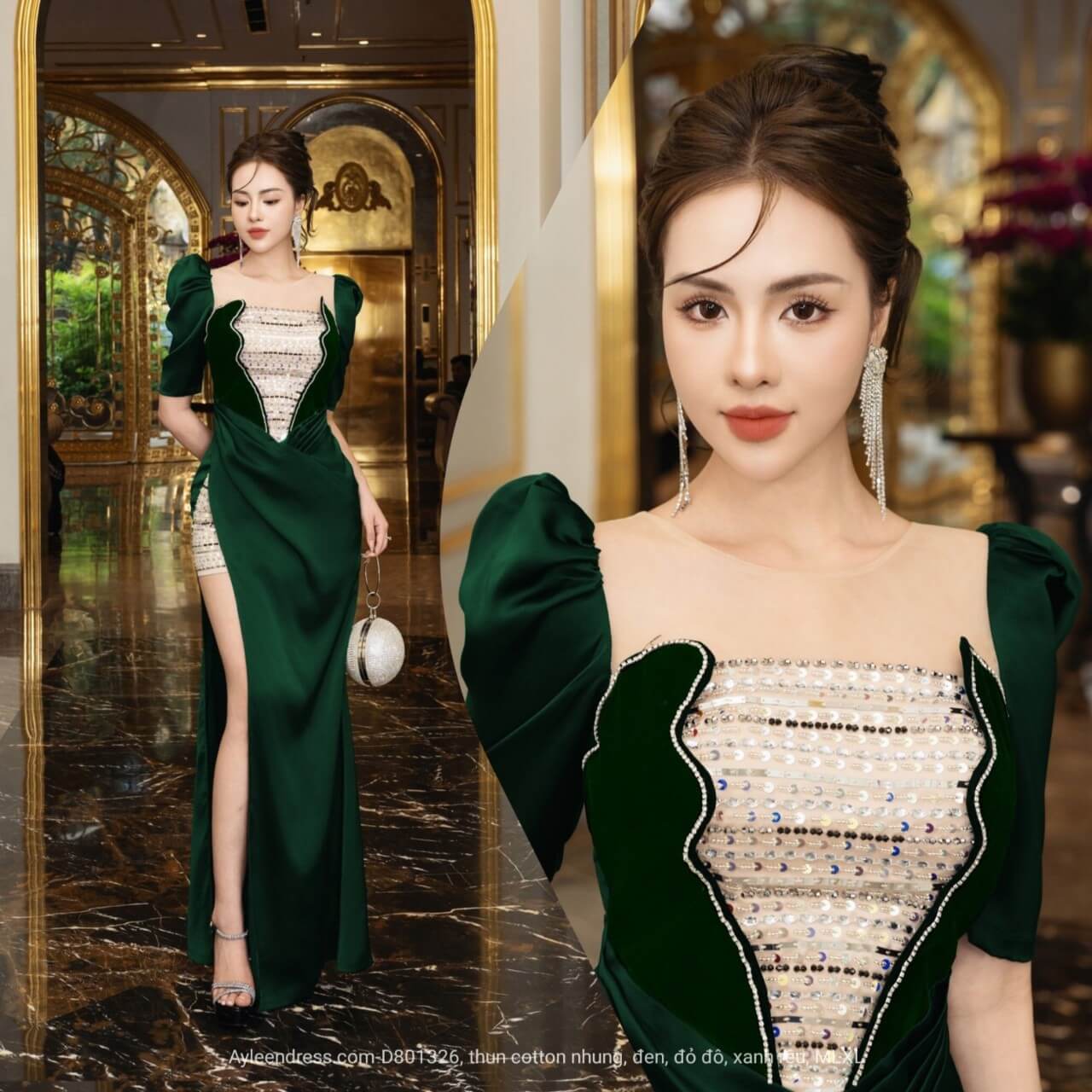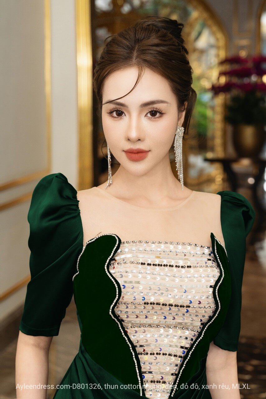 Đầm Dạ hội phối nhung kết pha lê