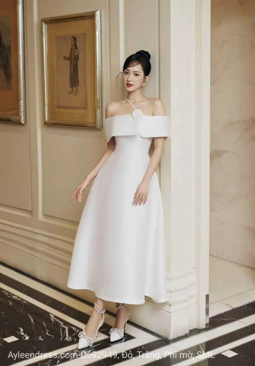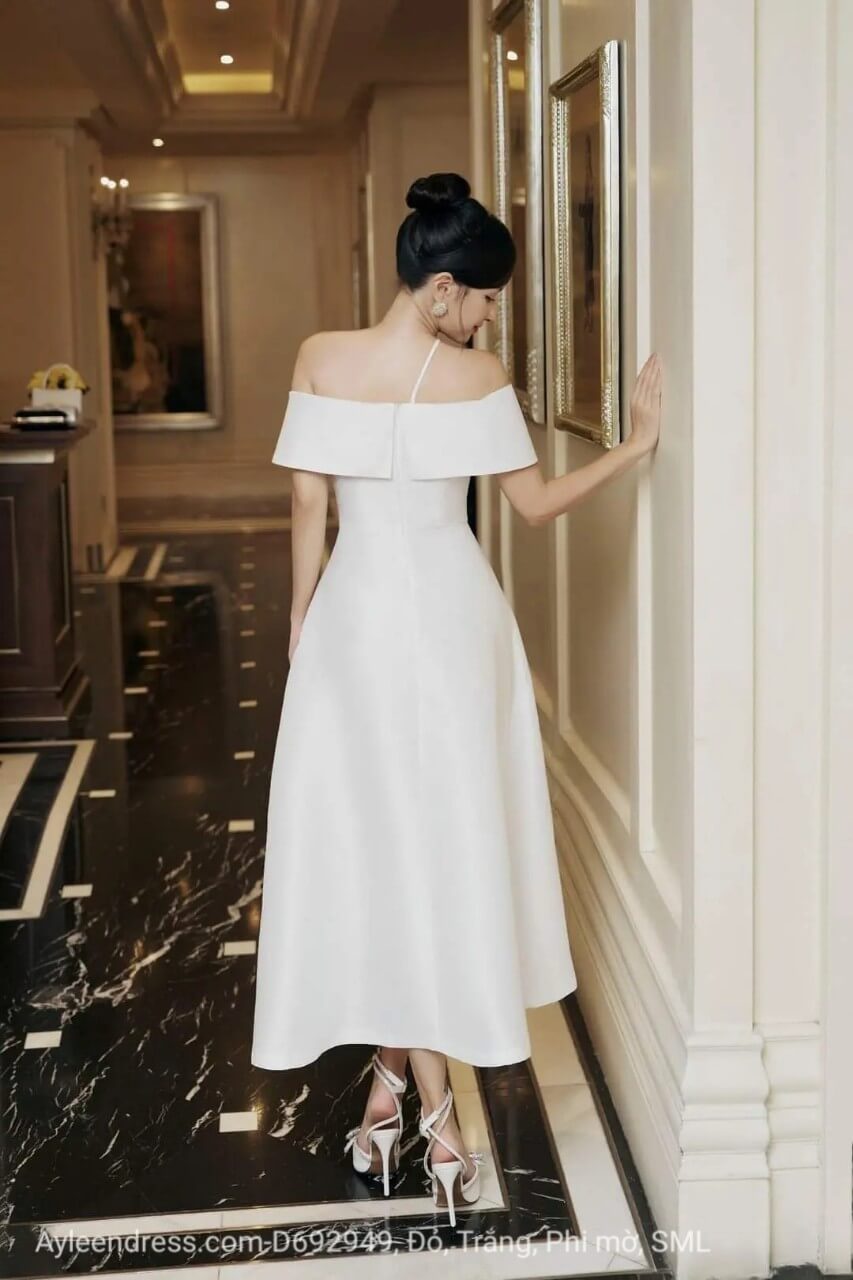 Đầm trễ vai mang lại vẻ quyến rũ, vừa kín đáo, vừa gợi cảm, che bắp tay to, khoe xương quai xanh, trẻ trung, nhìn đầy đặn hơn. Đặc biệt, thu hút người khác giới.