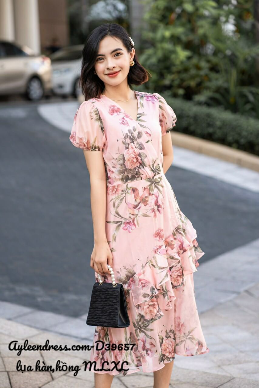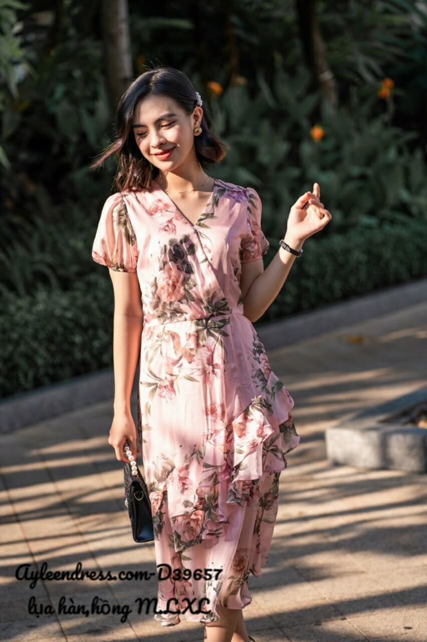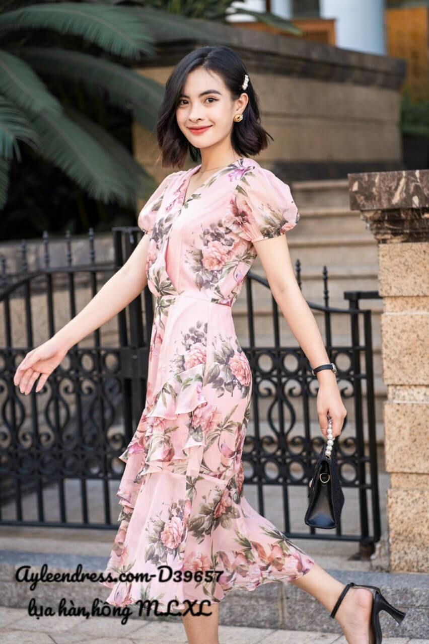 Đầm hoa nhúng bèo mùa hè xinh xắn