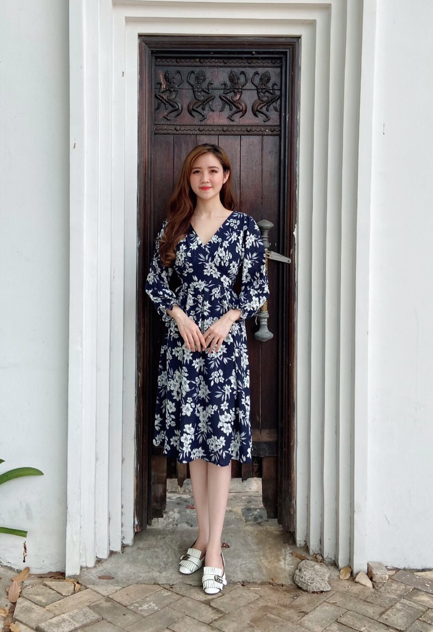 Đầm hoa tay dài trẻ trung, chất đũi mát, nhẹ, thoáng và thấm mồ hôi cực tốt.