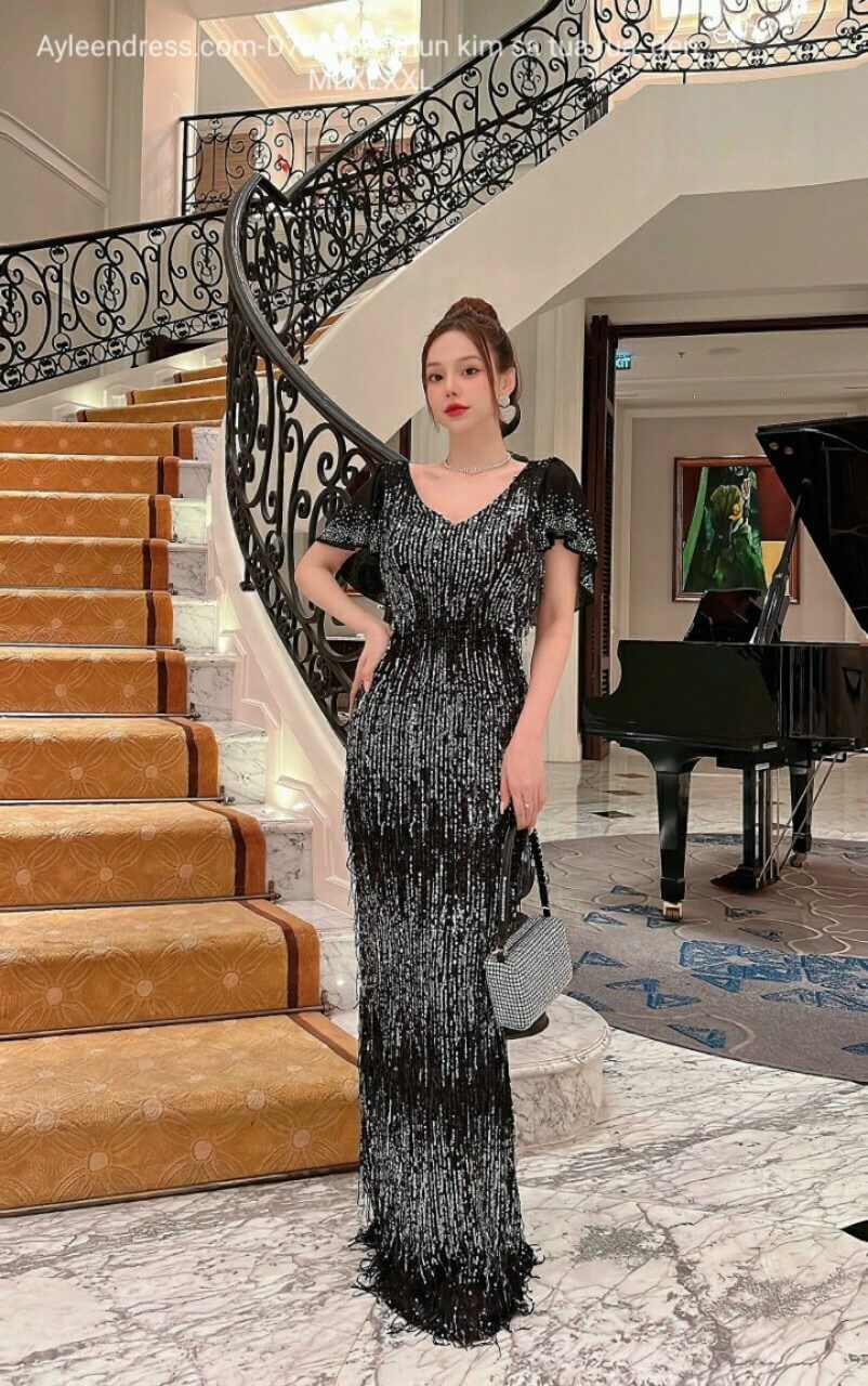 Đầm kim sa tua rua tay choàng