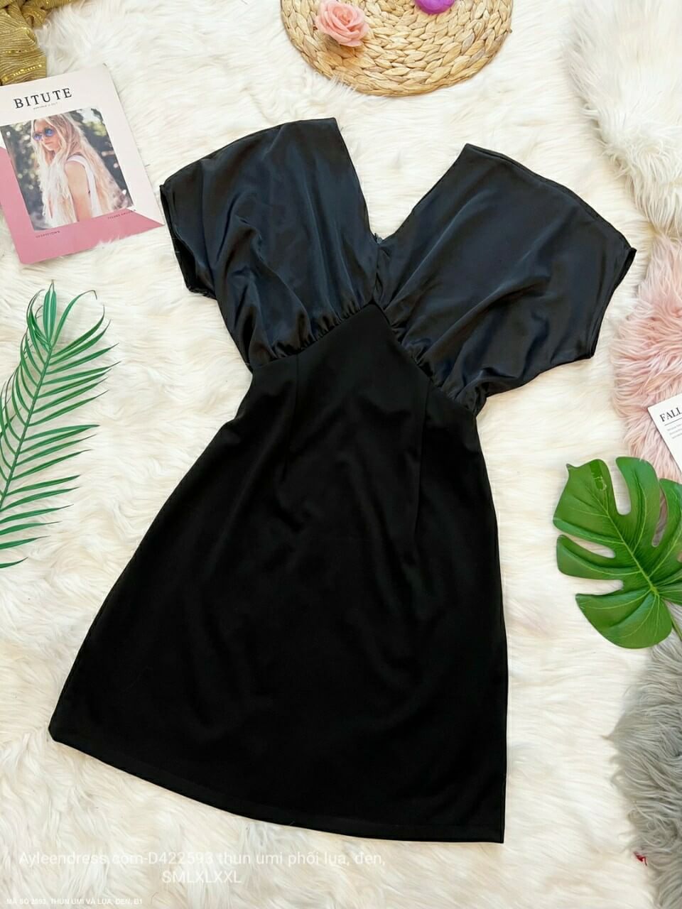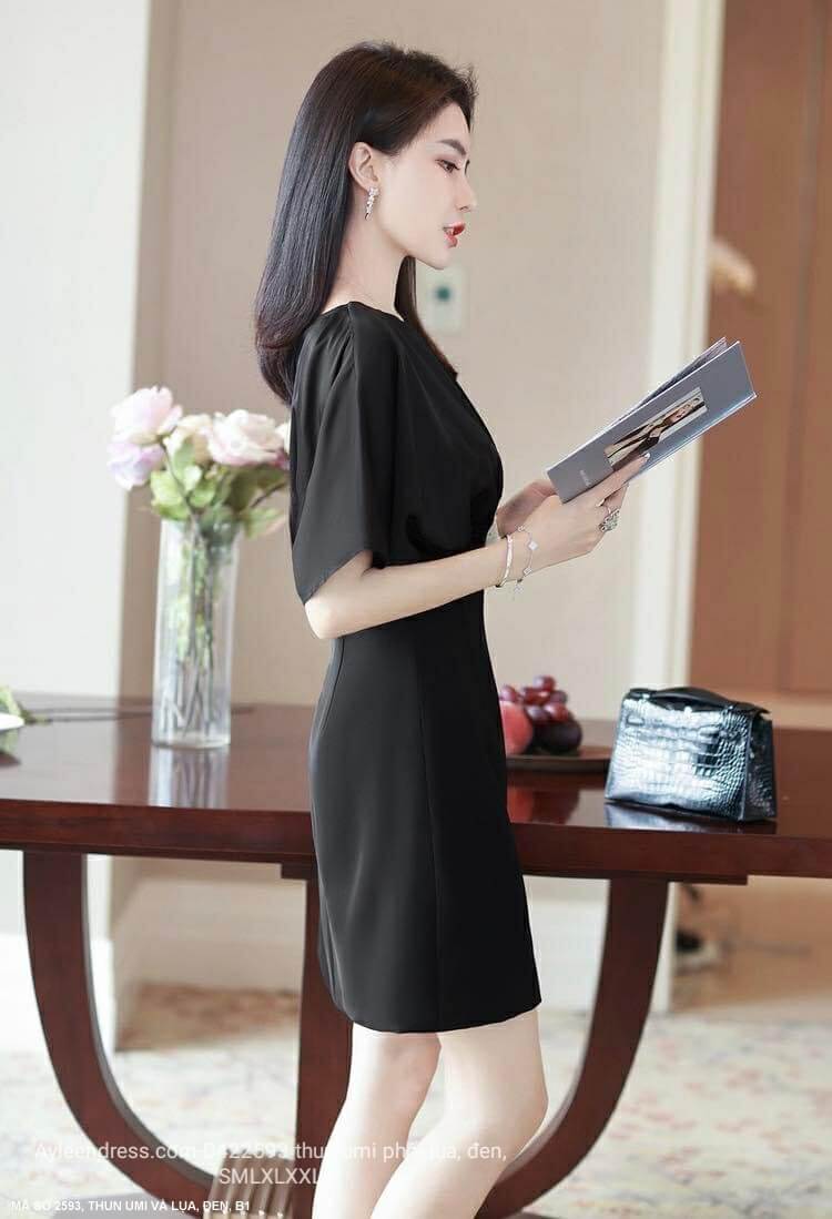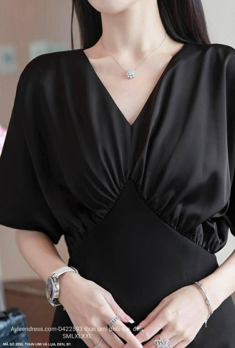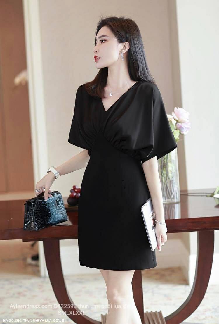 Đầm màu đen cổ tim tay cánh dơi