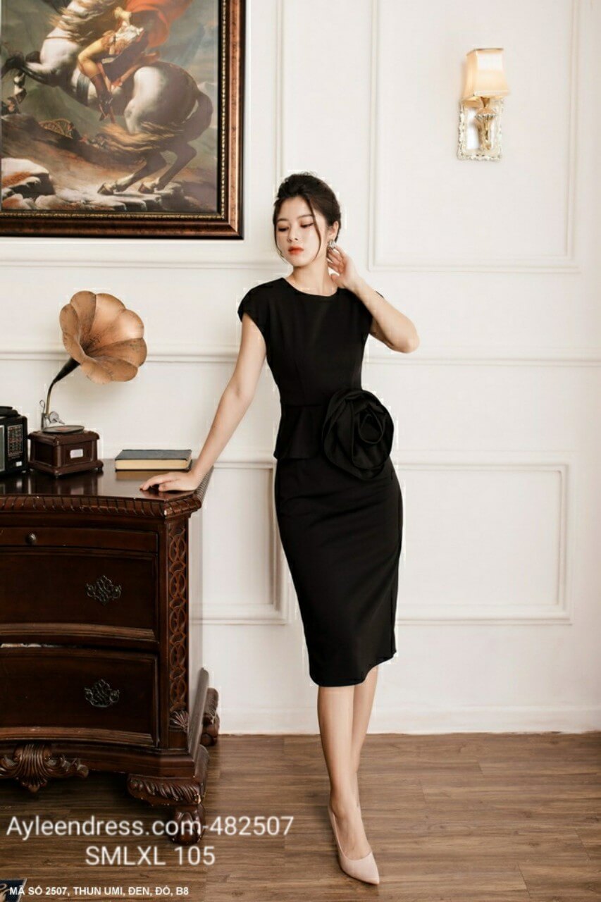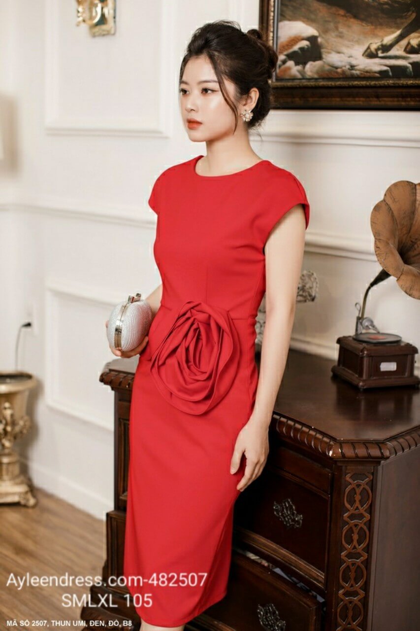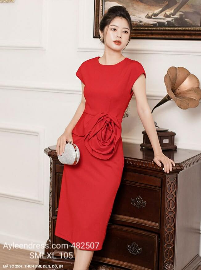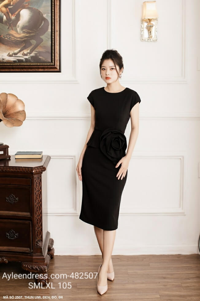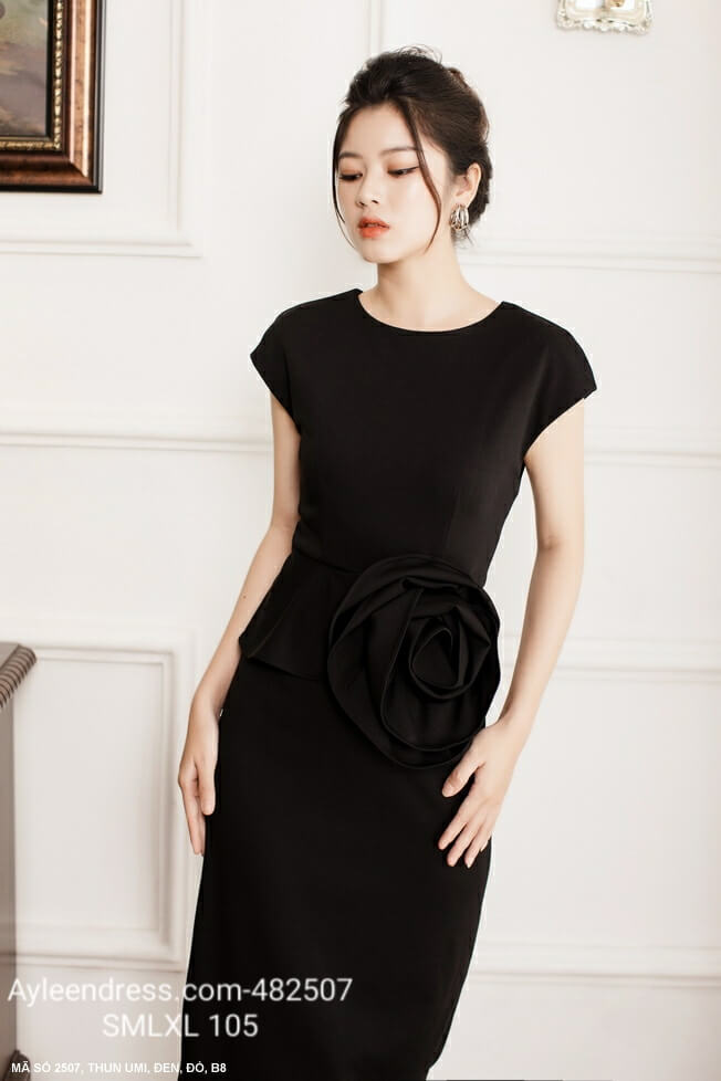 Đầm ôm body đính hoa hồng lớn bên eo
