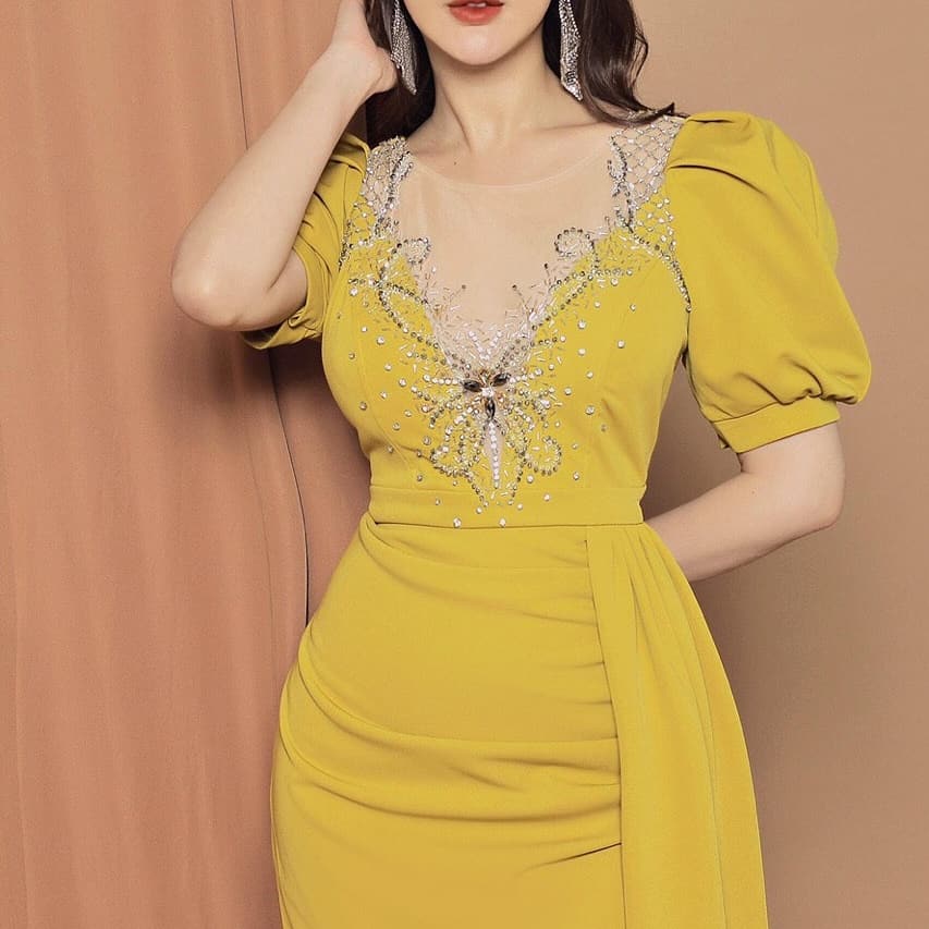 Đầm ôm body dự tiệc kết pha lê hình bướm