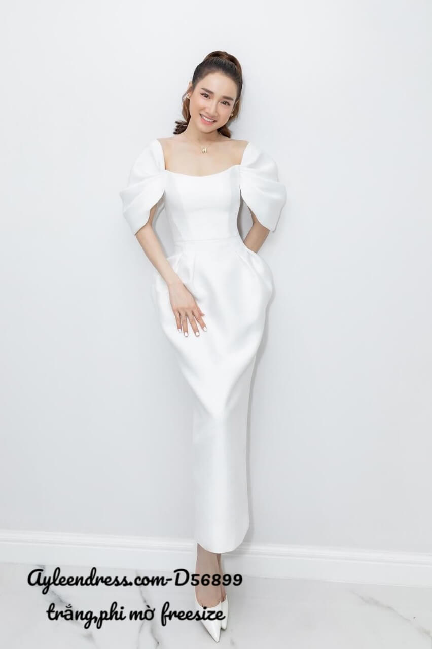 Đầm ôm body kiểu hở vai tay phồng cúp xẻ ngực