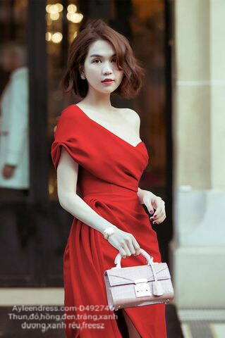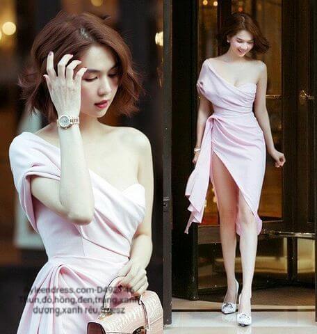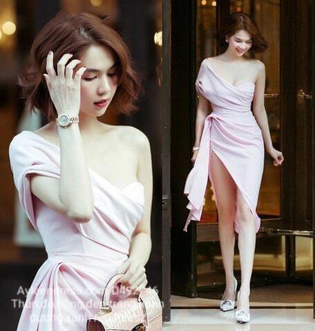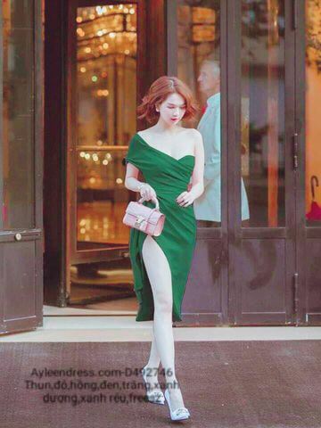 Đầm ôm body kiểu lệch vai xéo tà sang trọng