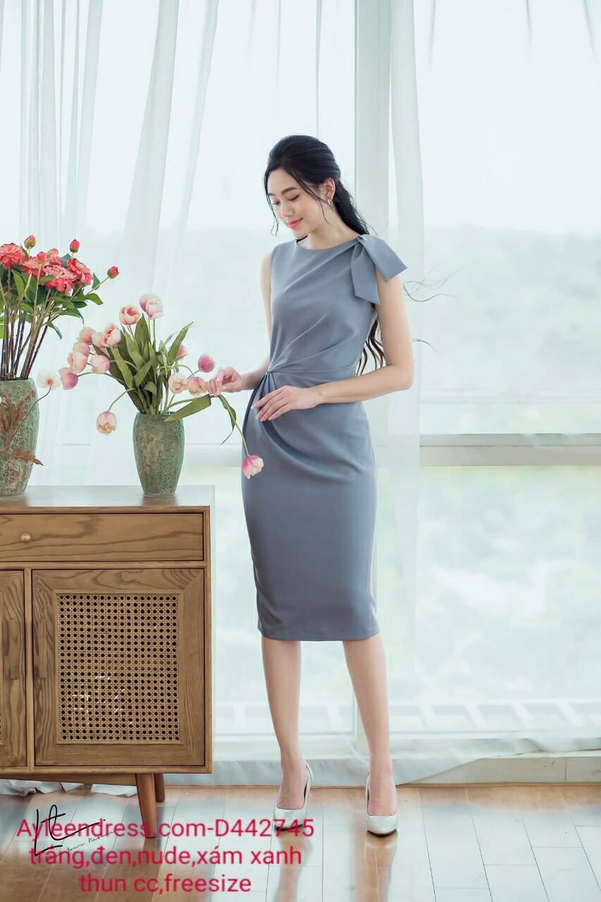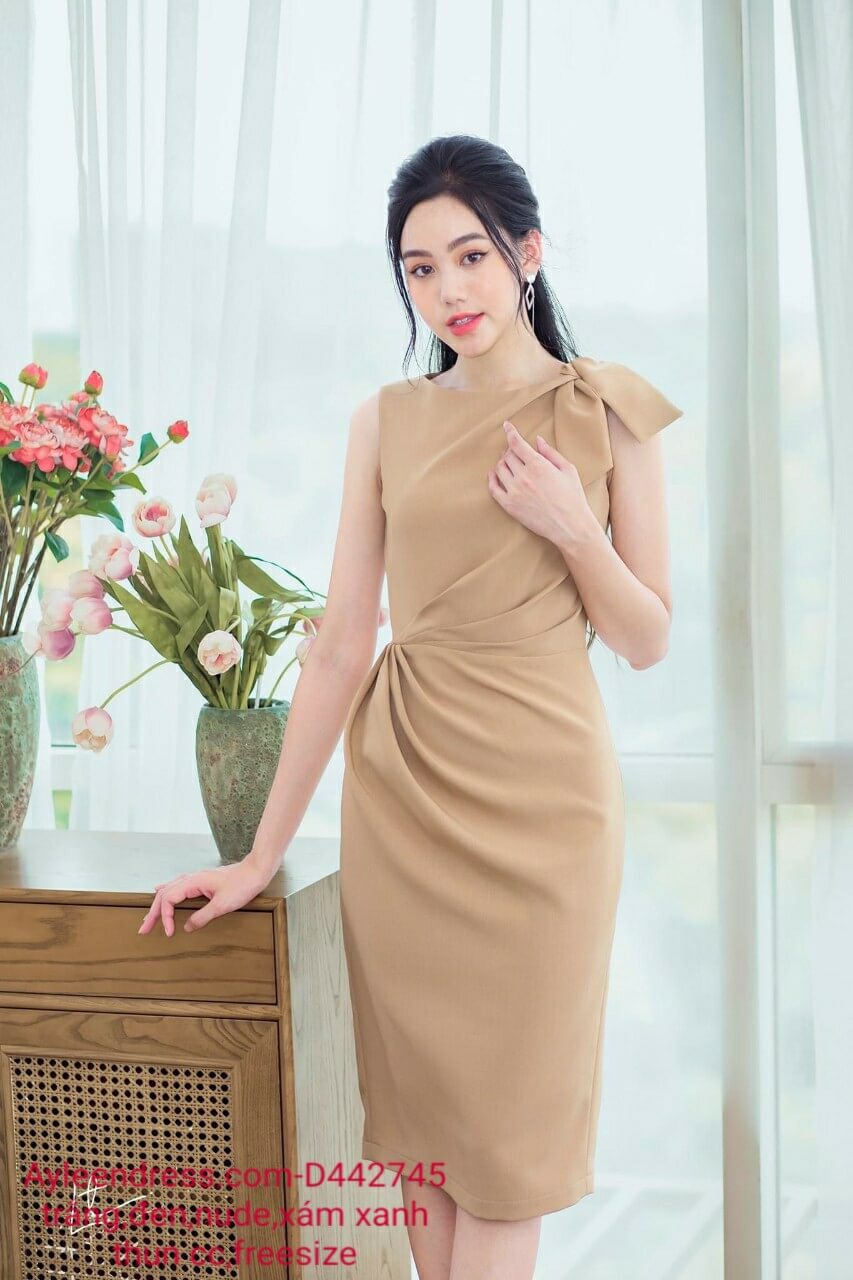 Đầm ôm body kiểu sát nách nhún eo nơ vai