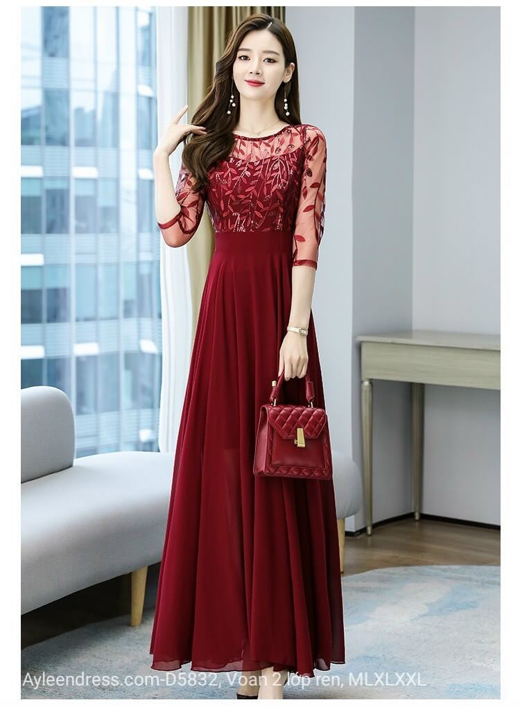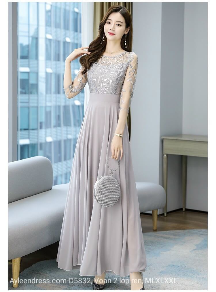 Đầm trung niên phối ren thêu cao cấp