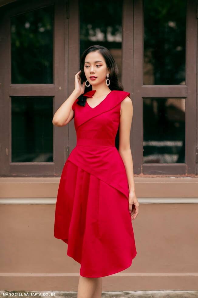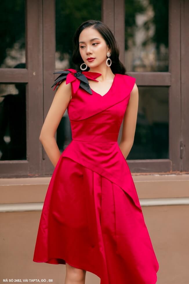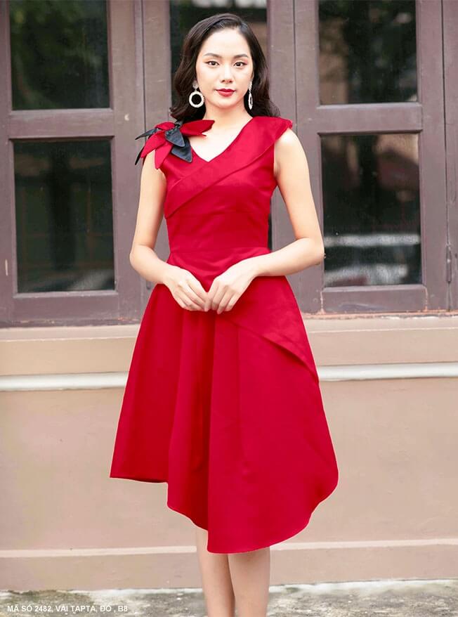 Đầm xòe sát nách cổ tim tà dài ngắn nữ tính trẻ trung