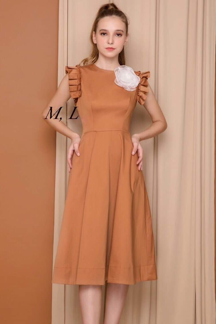 Đầm xòe sát tay đính hoa hồng cho người mập, bigsize