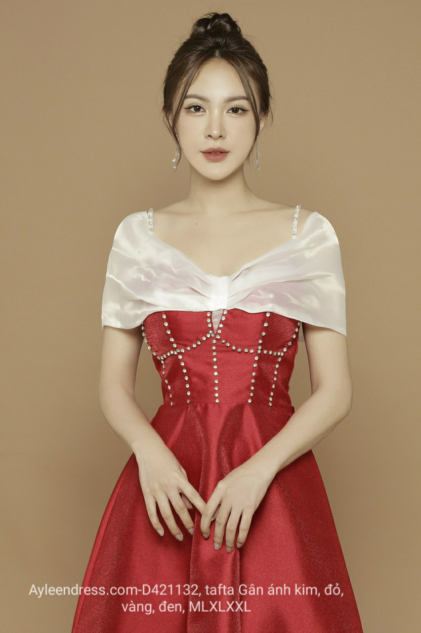 Đầm xoè tafta rớt vai đính đá