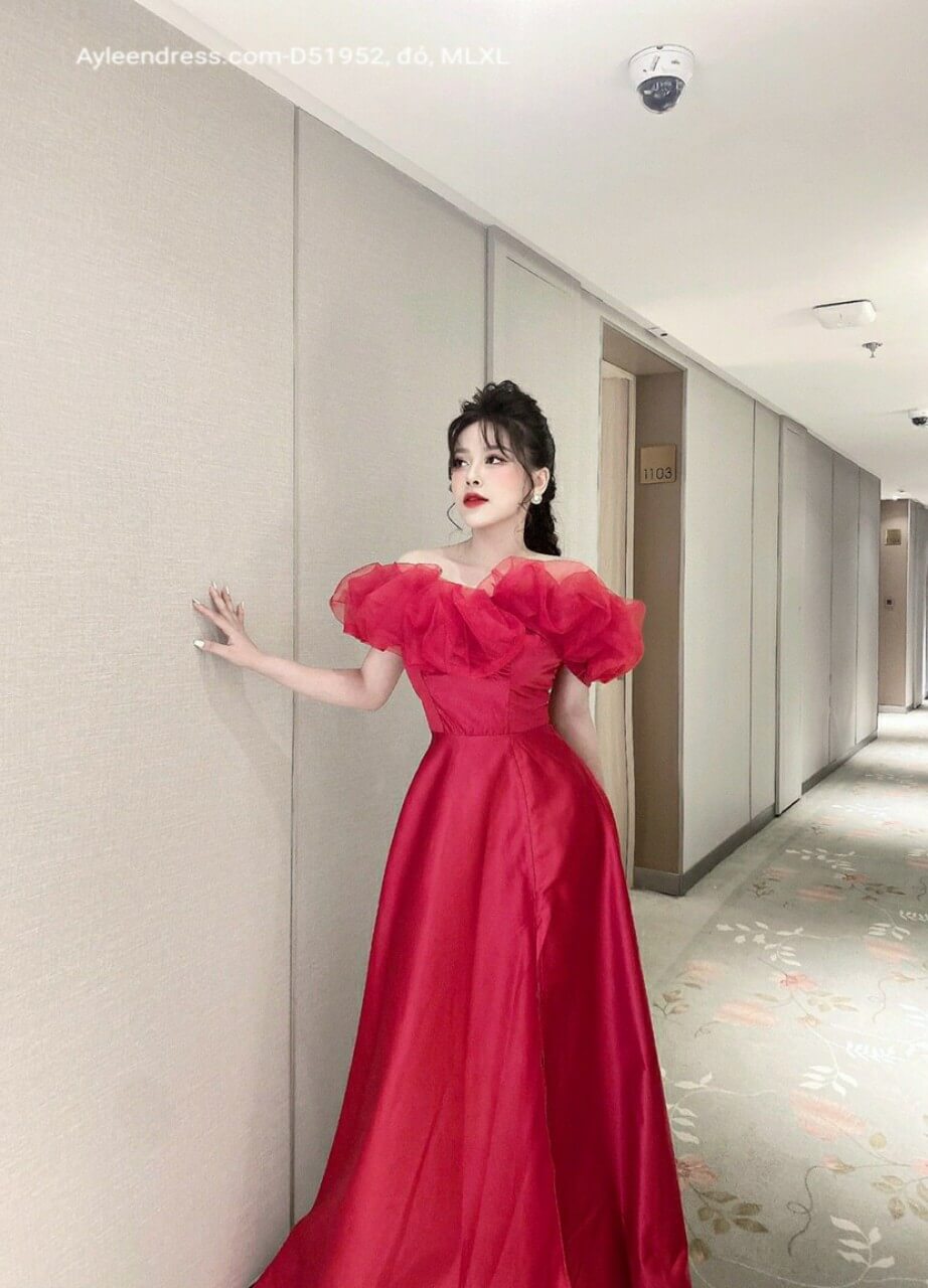 Đầm trễ vai mang lại vẻ quyến rũ, vừa kín đáo, vừa gợi cảm, che bắp tay to, khoe xương quai xanh, trẻ trung, nhìn đầy đặn hơn. Đặc biệt, thu hút người khác giới.