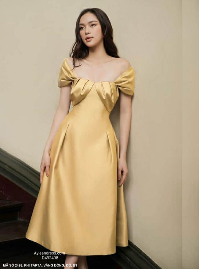 Đầm trễ vai mang lại vẻ quyến rũ, vừa kín đáo, vừa gợi cảm, che bắp tay to, khoe xương quai xanh, trẻ trung, nhìn đầy đặn hơn. Đặc biệt, thu hút người khác giới.