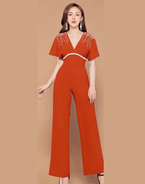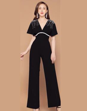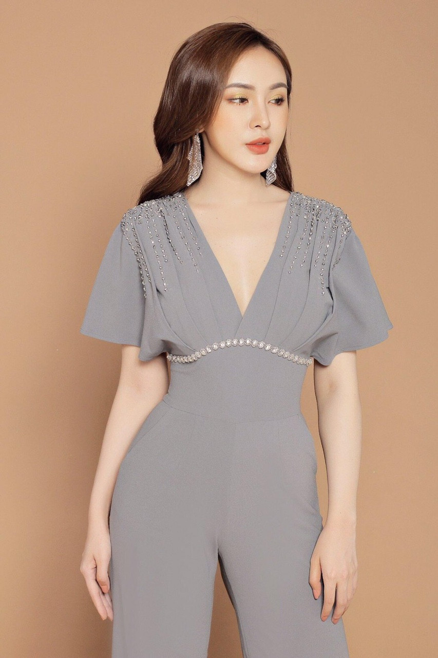 Jumpsuit dài tay cánh dơi cổ tim đính ngọc đẹp sang