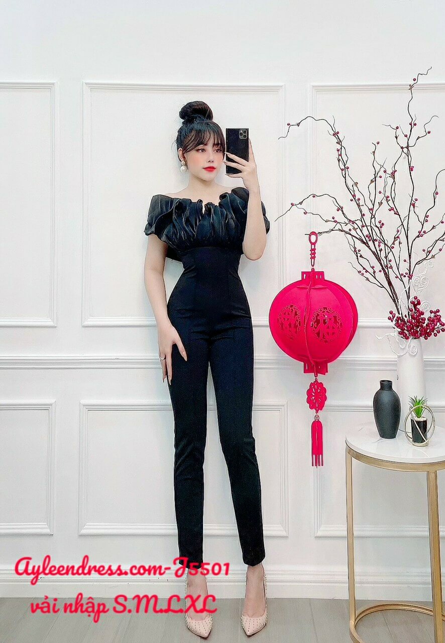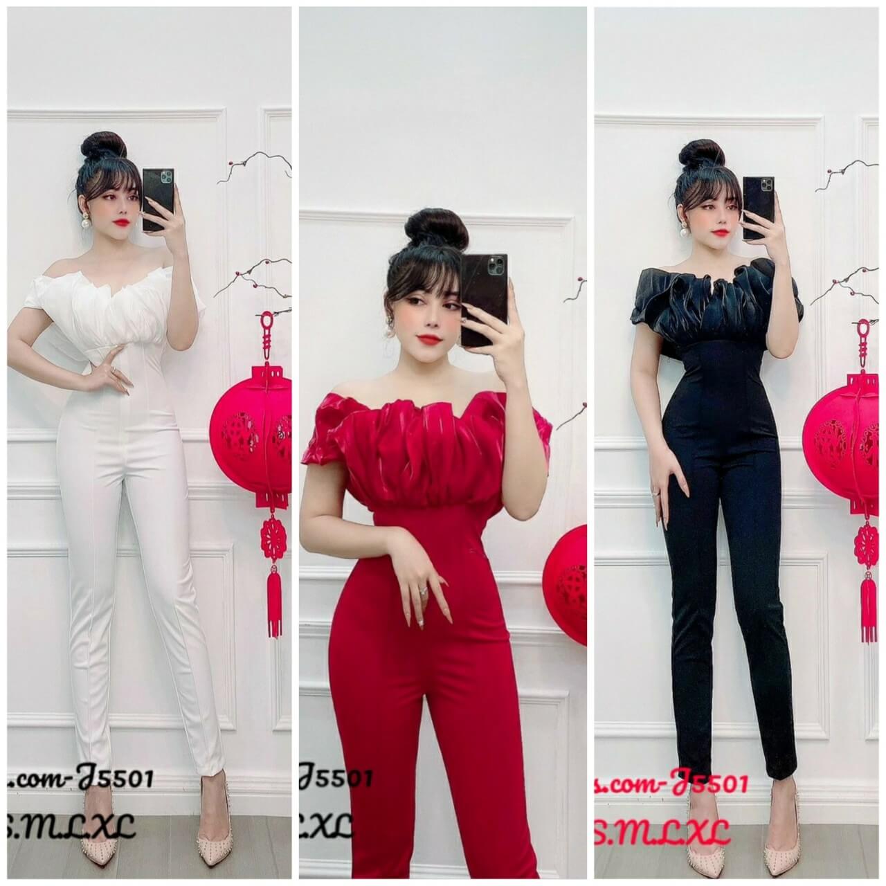 Jumpsuit thiết kế eo cao bèo tay phối màu trẻ trung