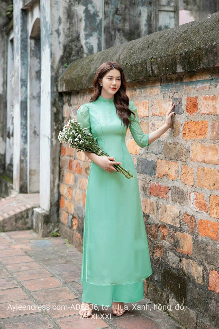 Set áo dài 4 tà tay bồng tơ óng cao cấp