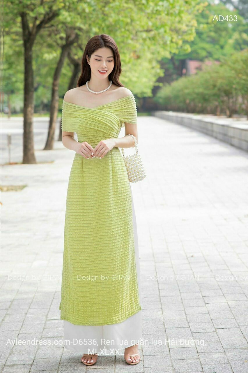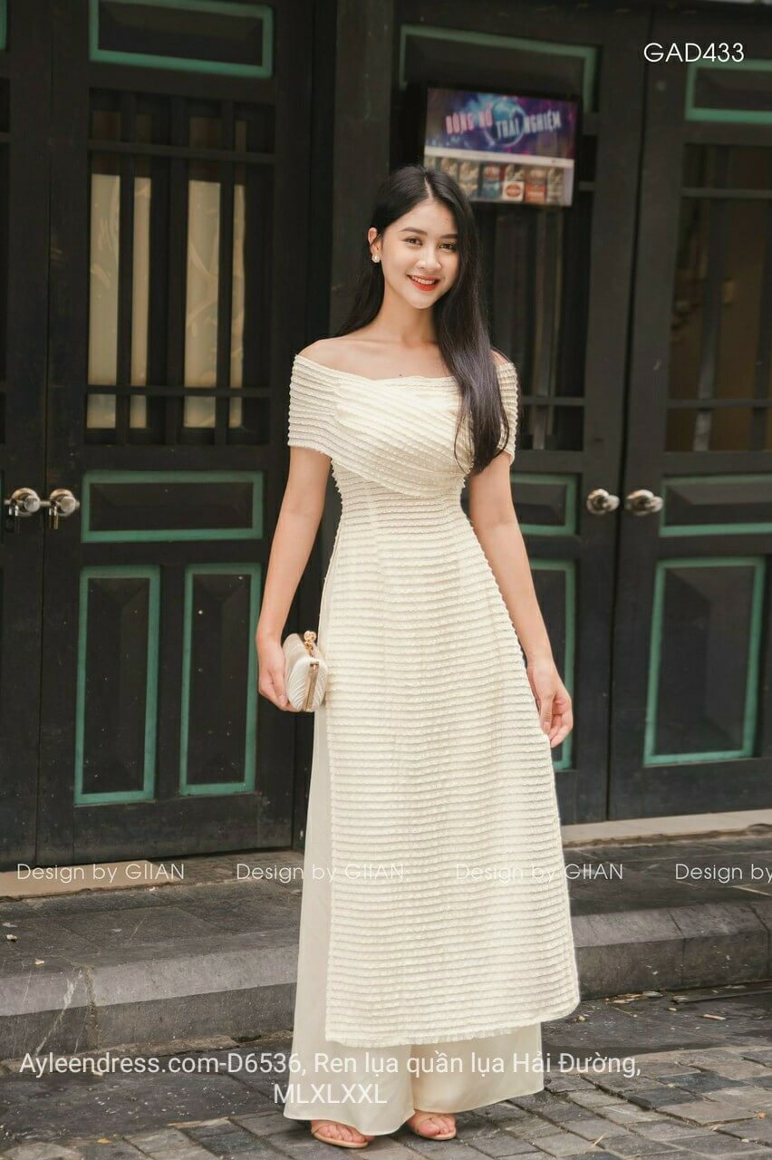 Set áo dài tay ren bẹt vai cao cấp