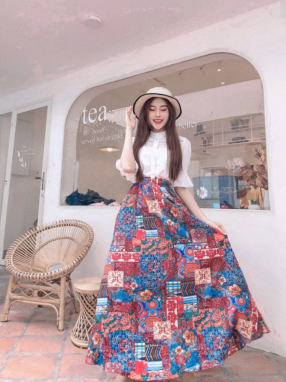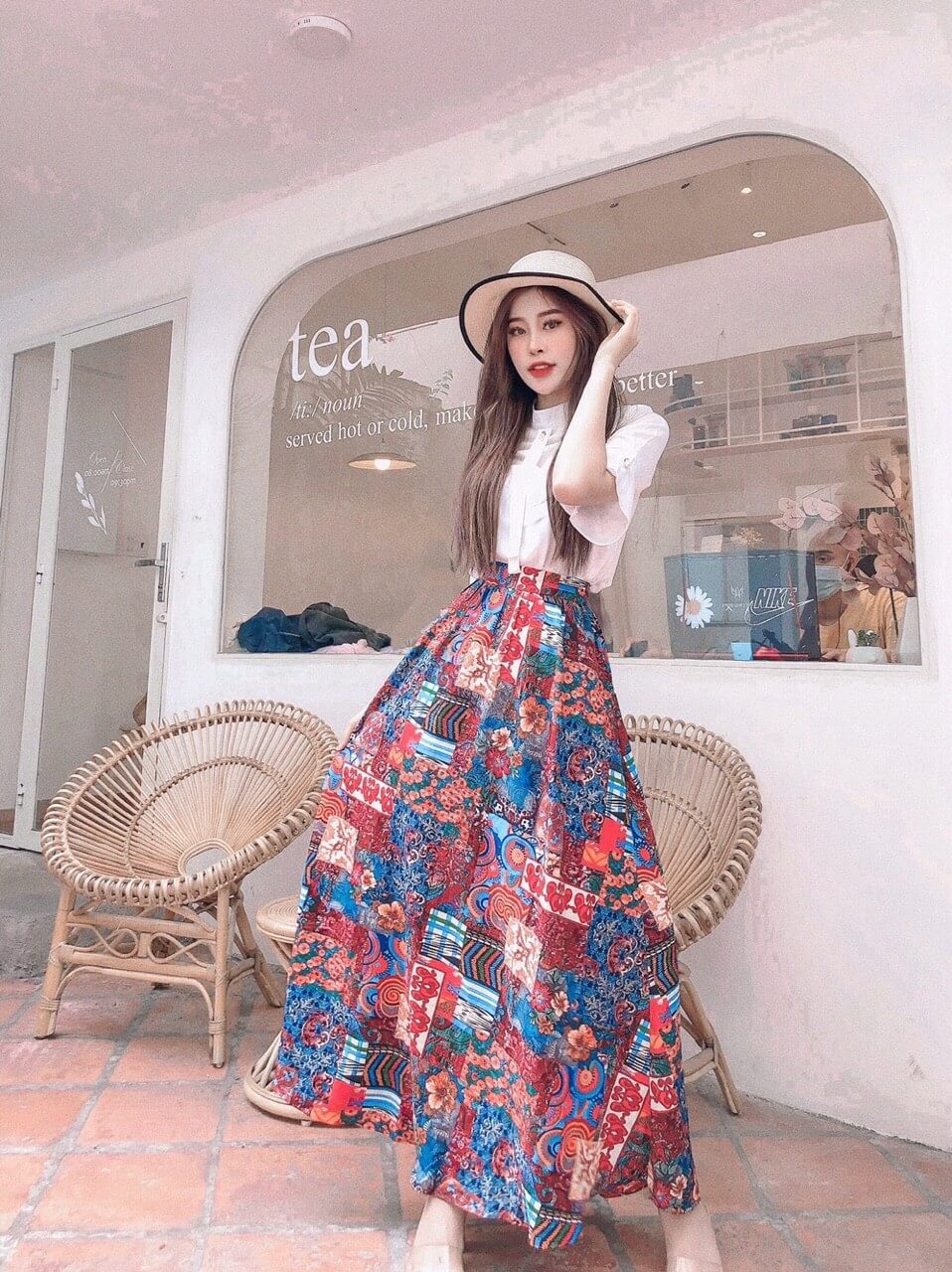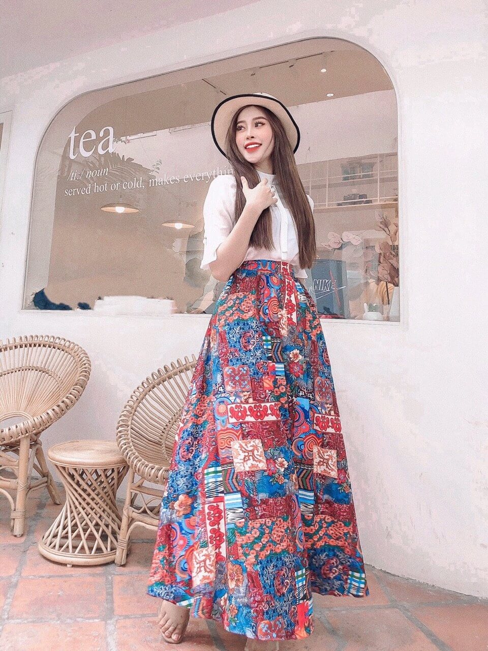 Set áo trắng chân váy thổ cẩm cá tính