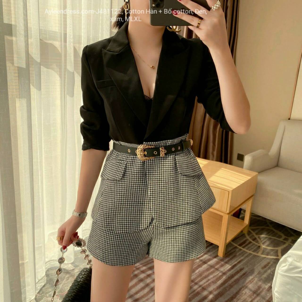Set áo Vest phối quần short caro