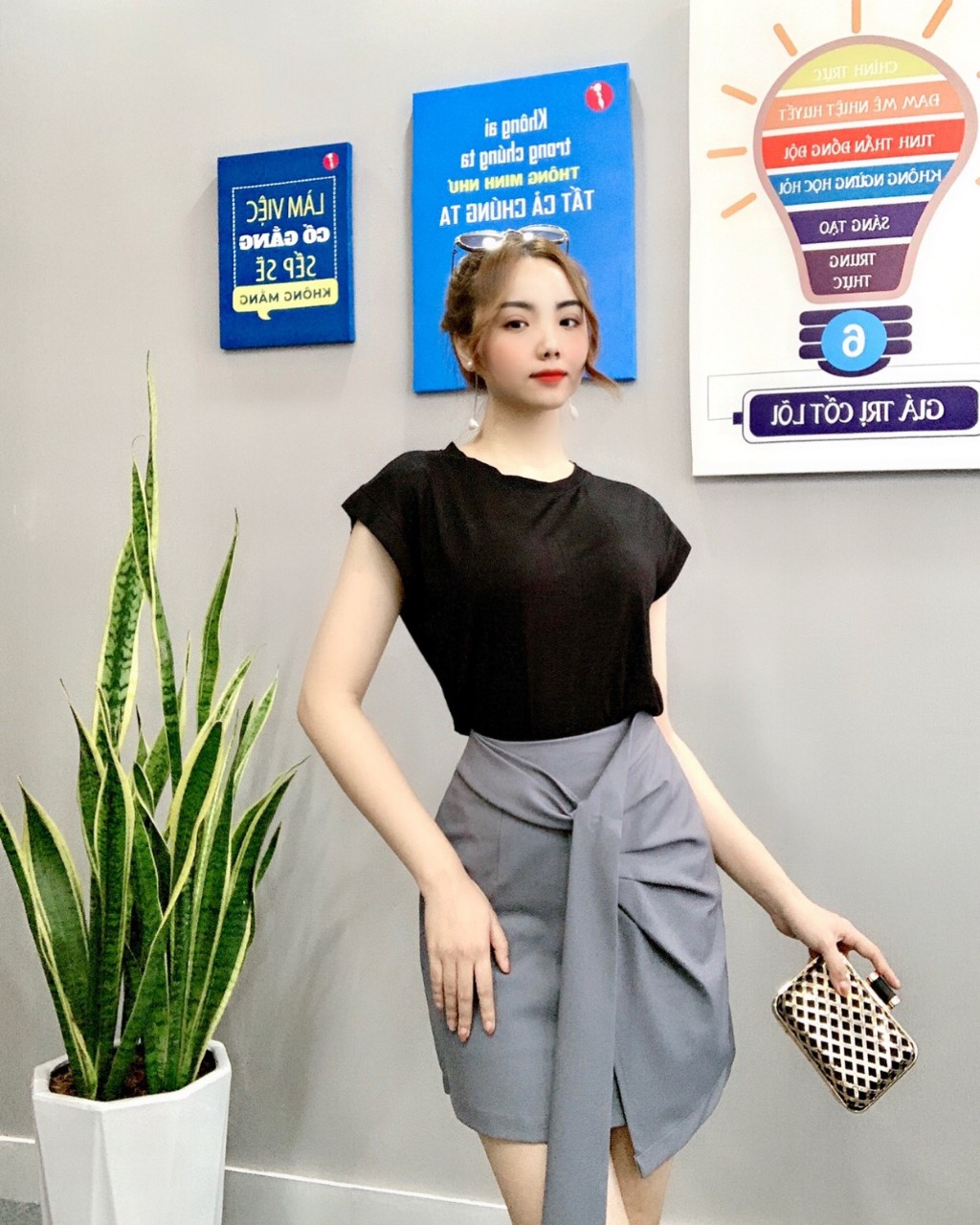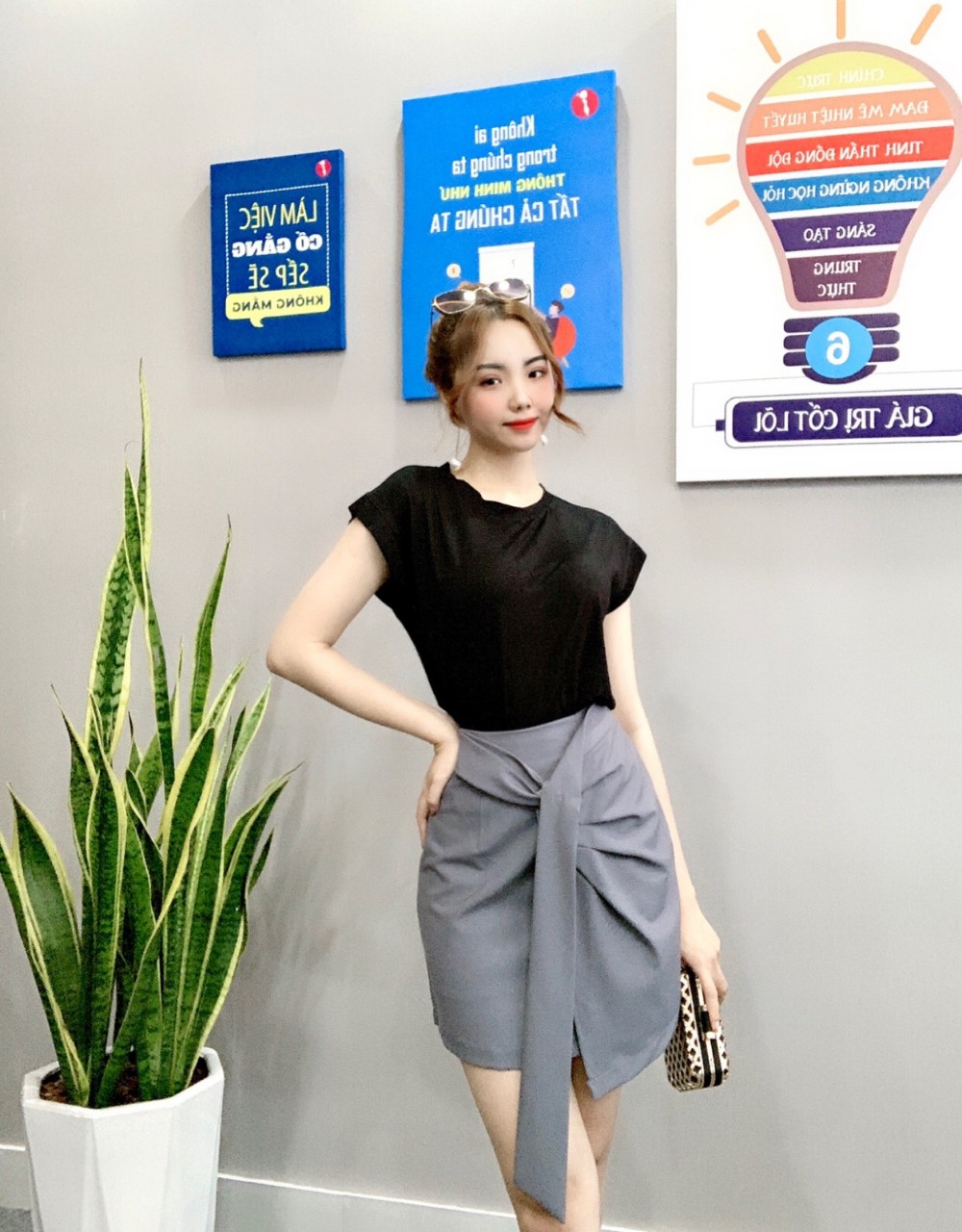 Set bộ chân váy Hàn quốc phối áo thun nhẹ nhàng