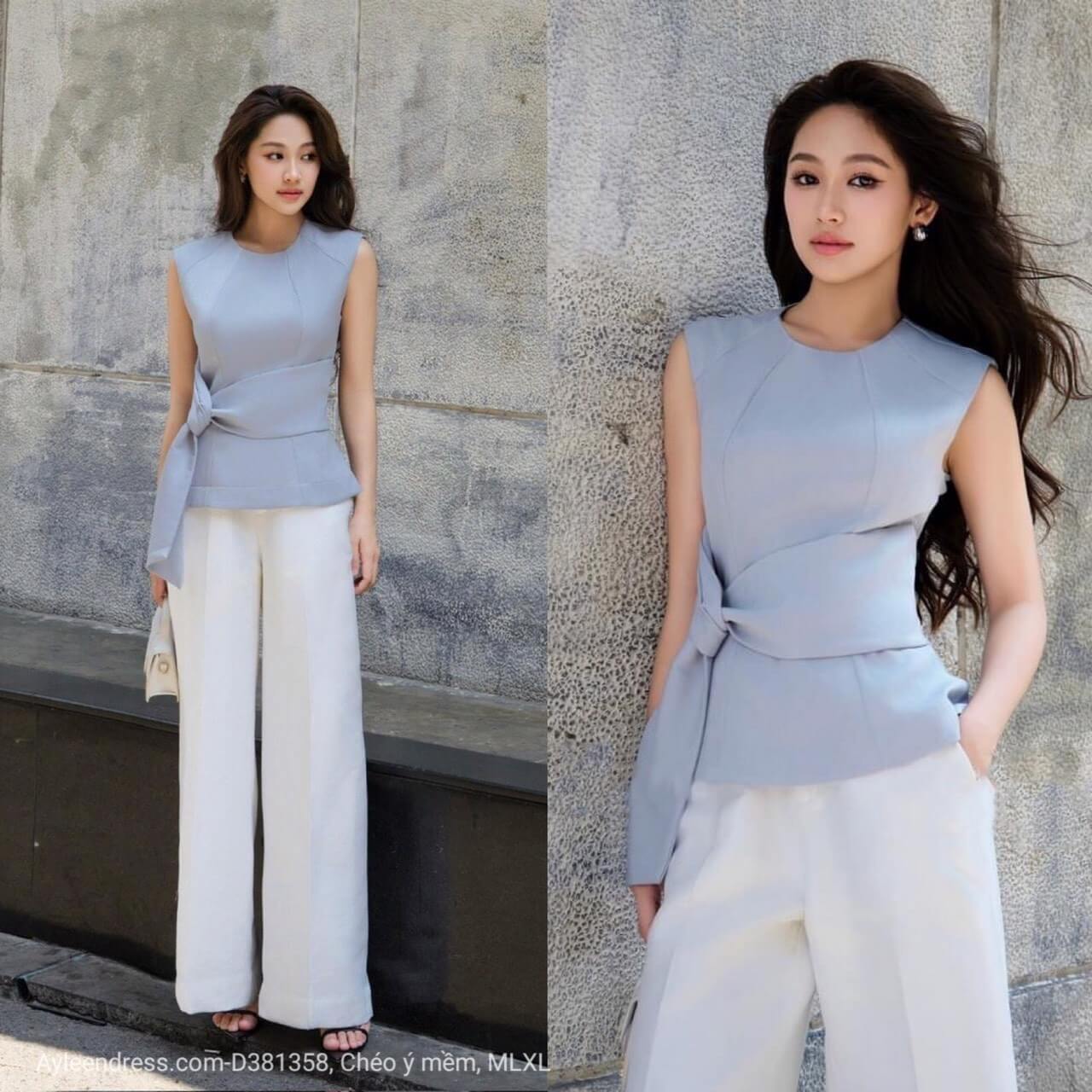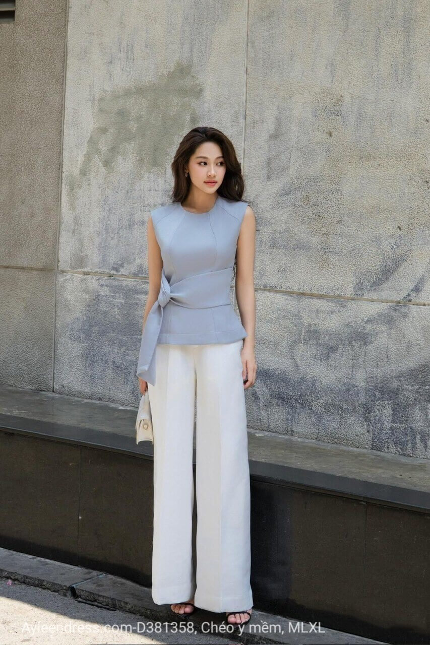Set áo cổ tròn quần ống suông