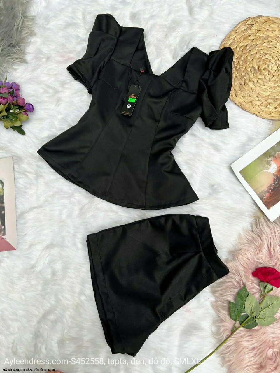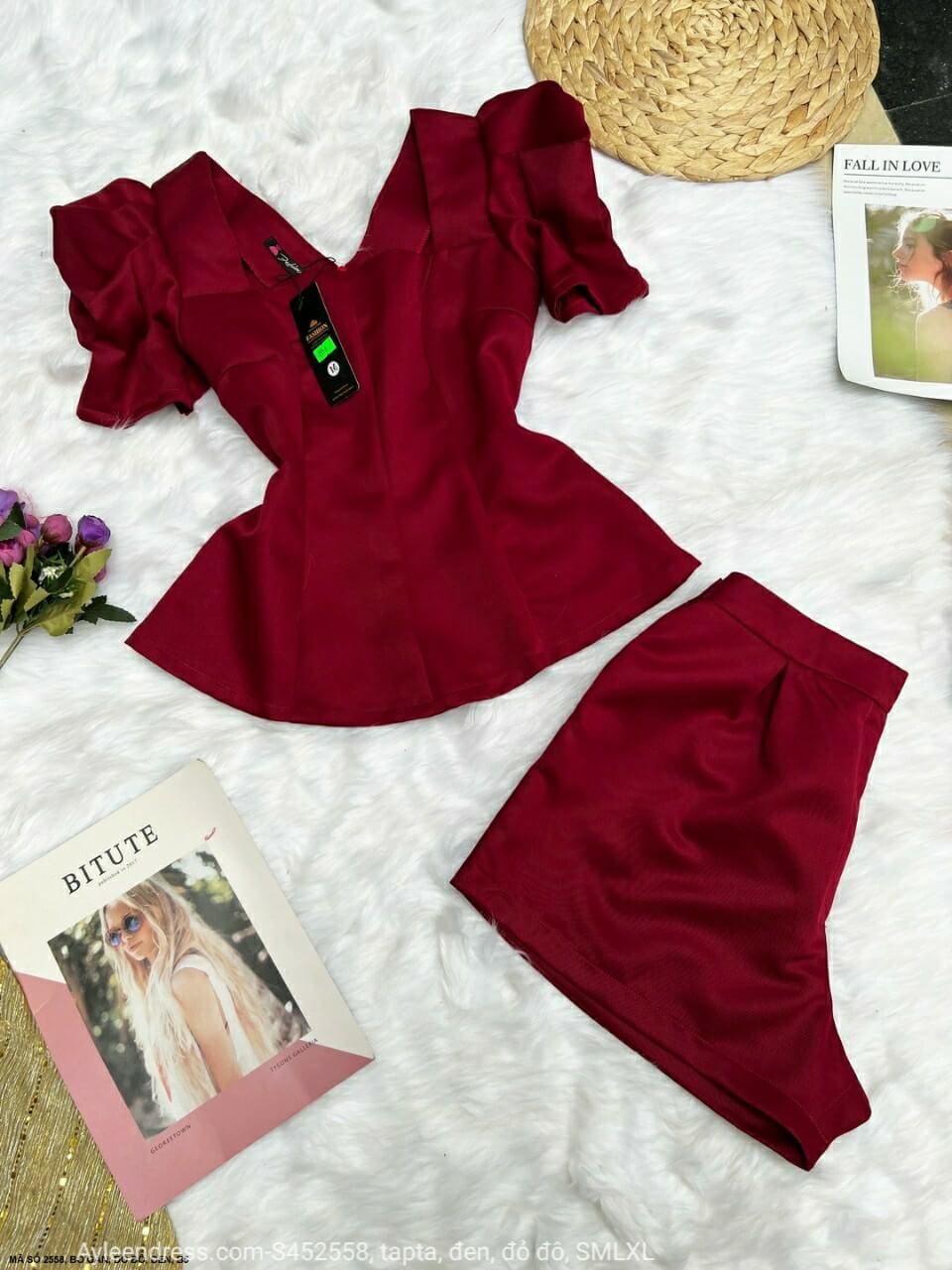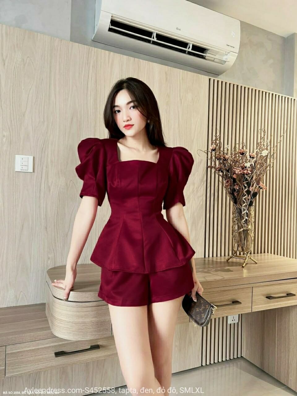 Set bộ đùi cổ vuông tay phồng áo peplum