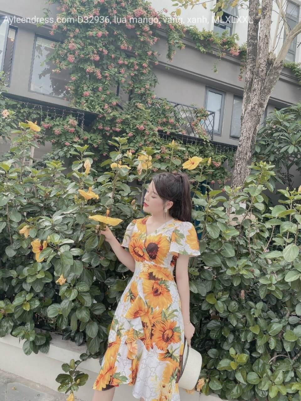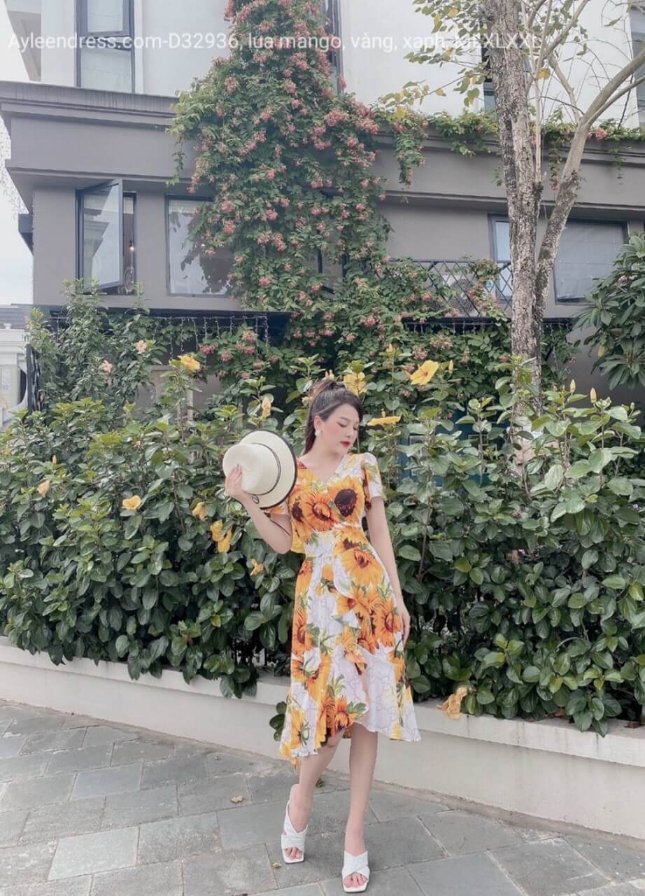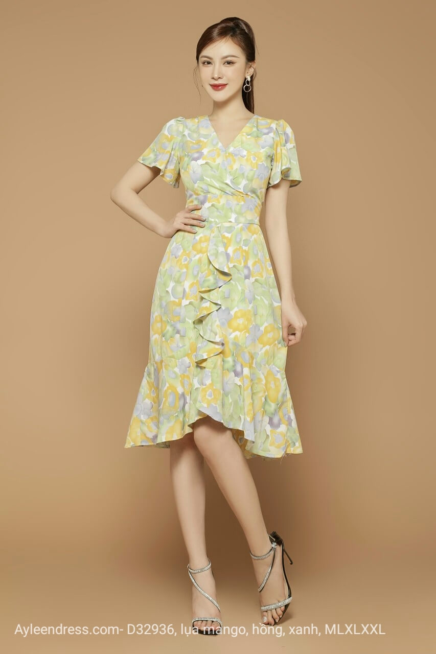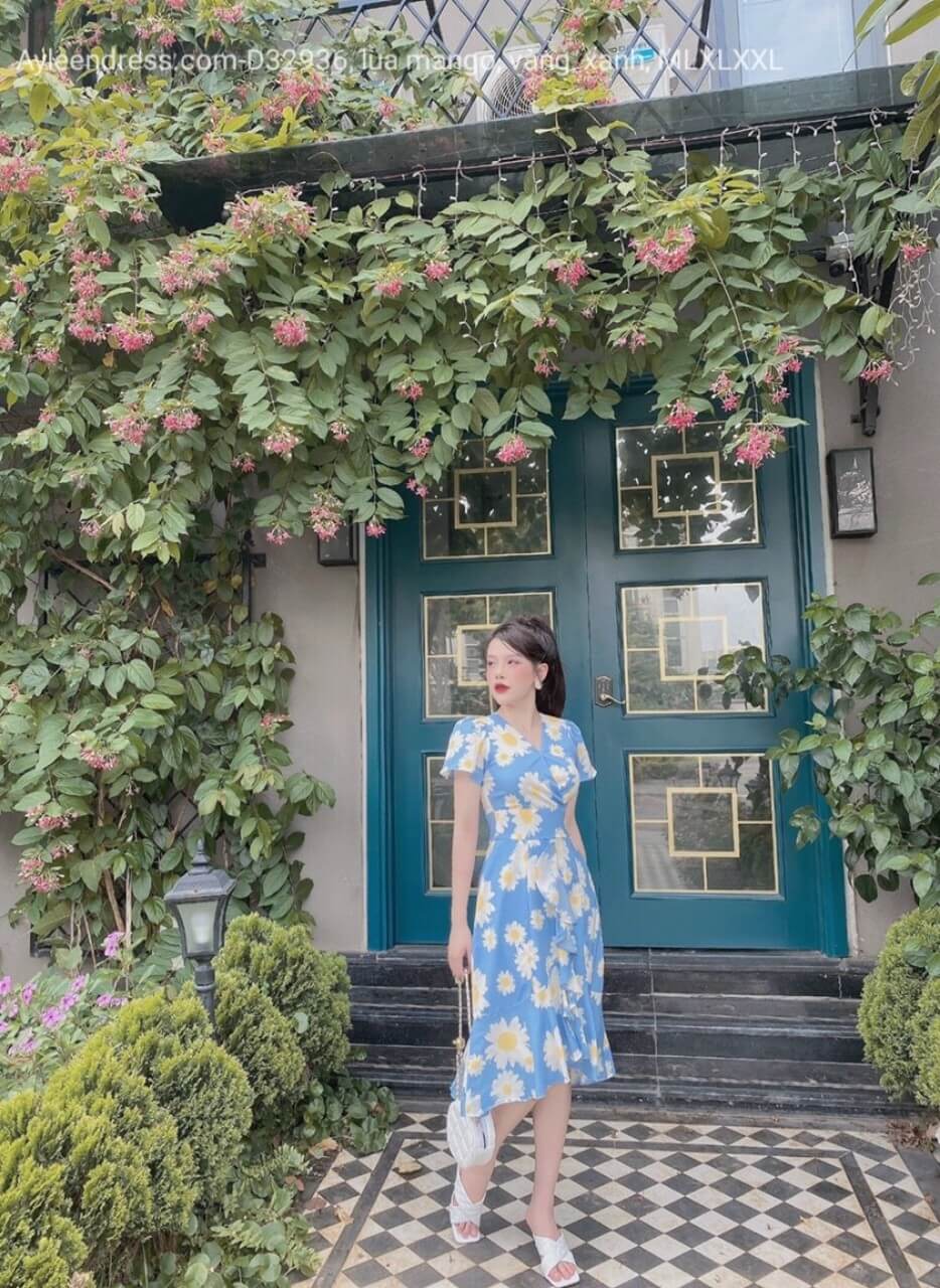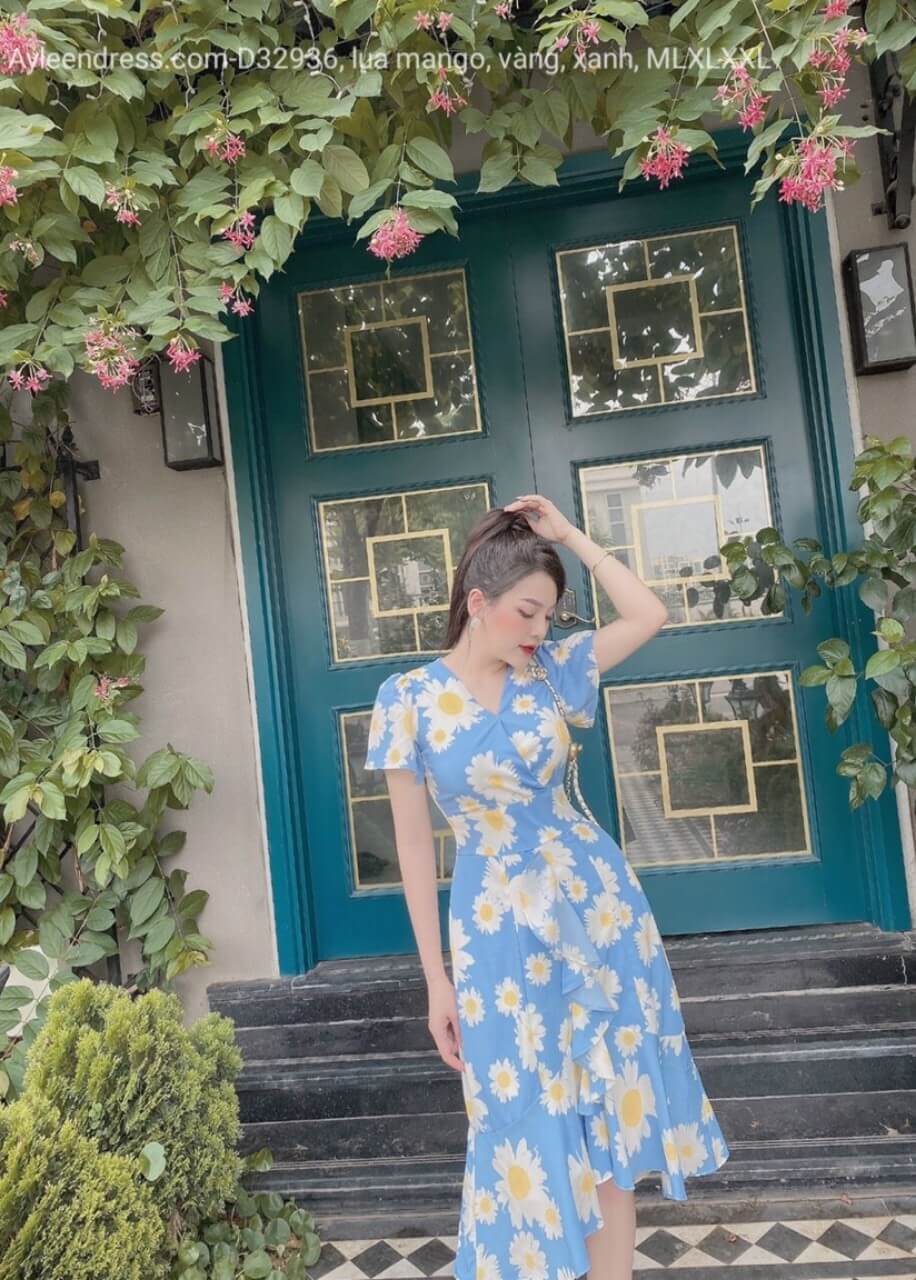 Váy hoa cổ tim đuôi cá nhún bèo