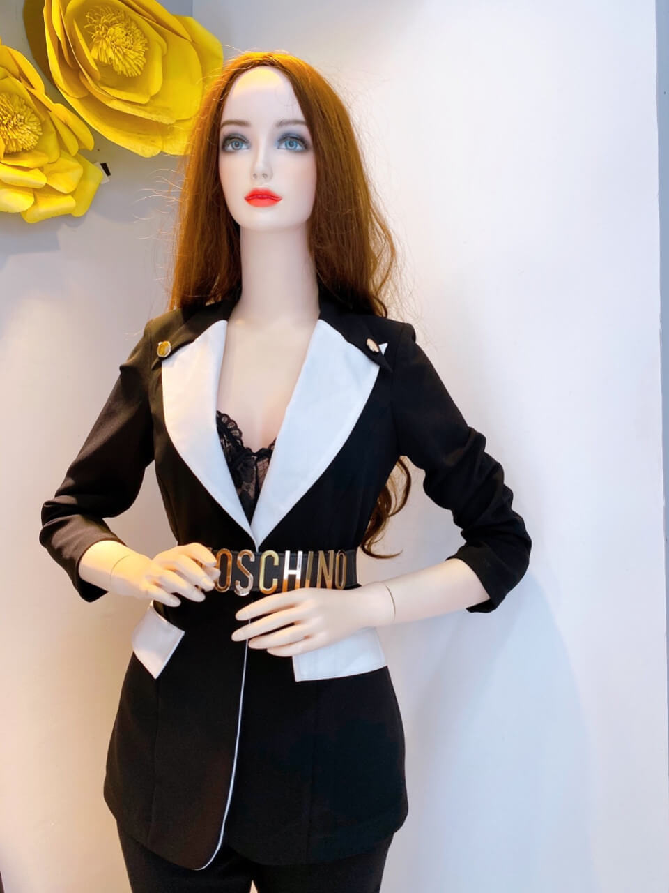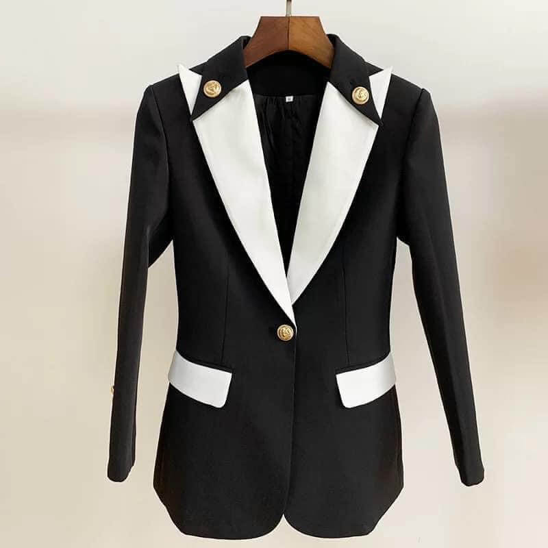 Vest nữ doanh nhân đen viền cổ trắng