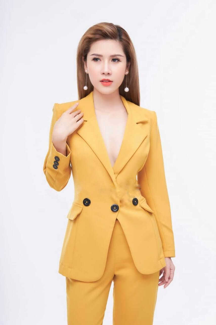 Vest nữ doanh nhân quần ống đứng đính 3 nút ở eo