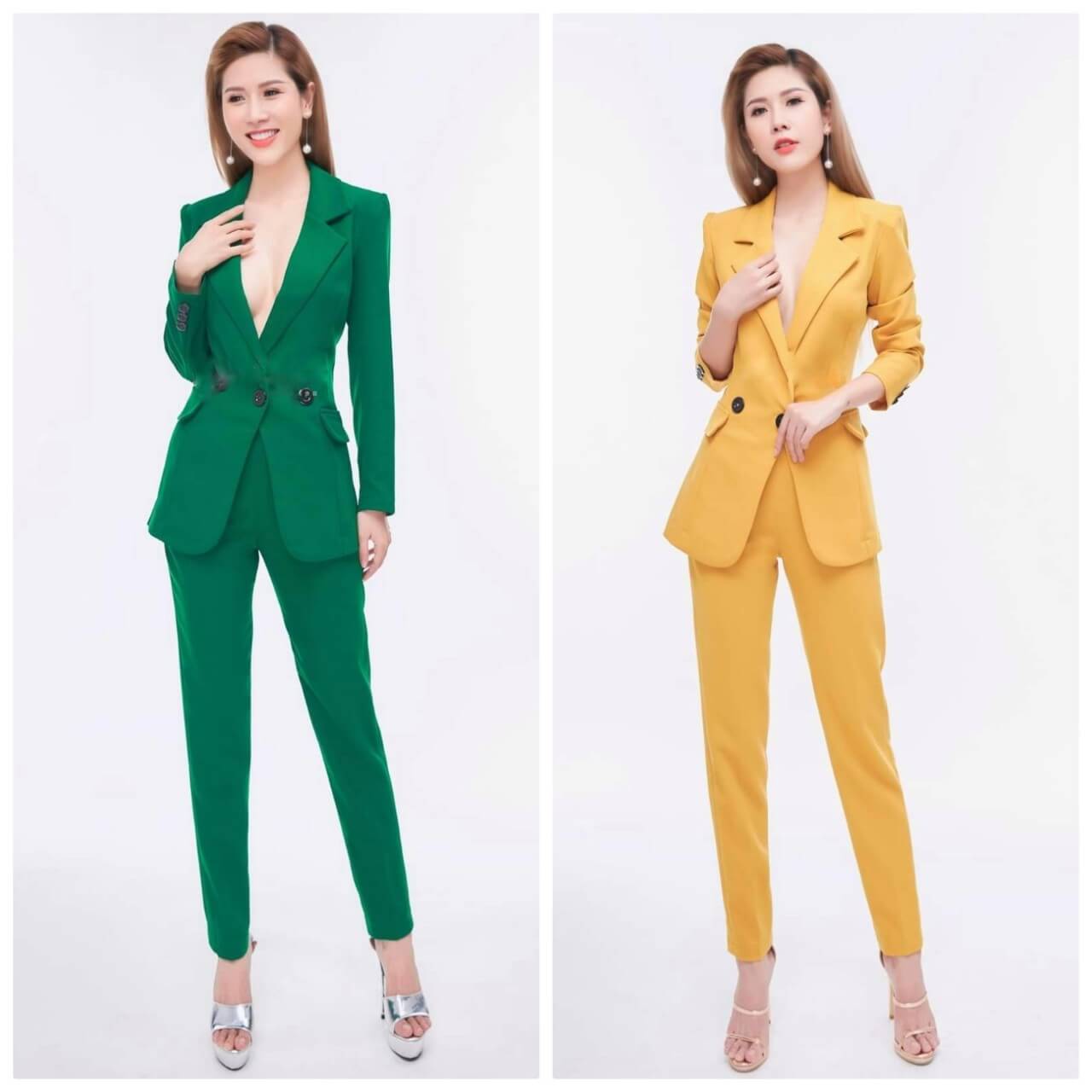 Vest nữ doanh nhân quần ống đứng đính 3 nút ở eo sang chảnh