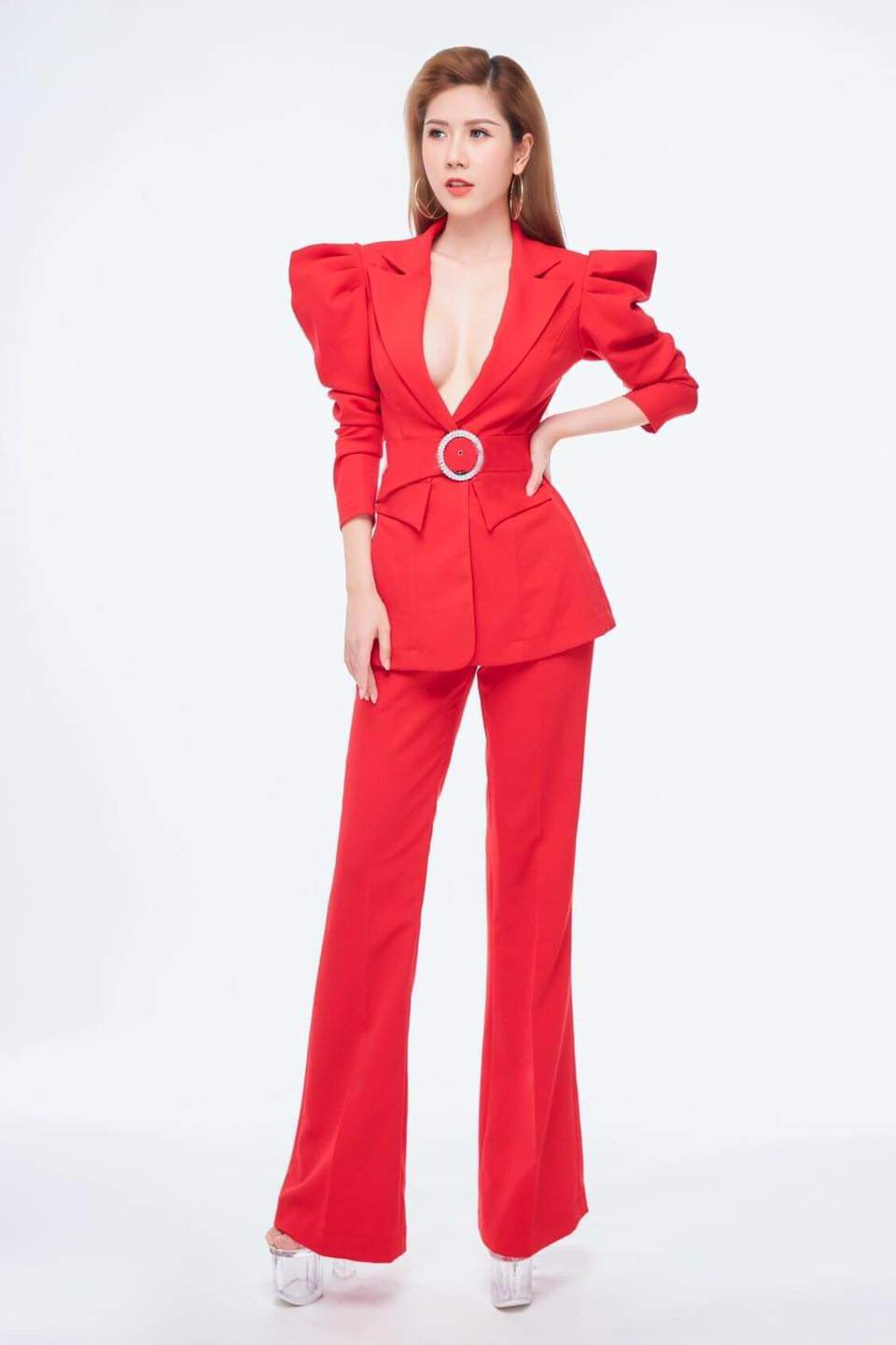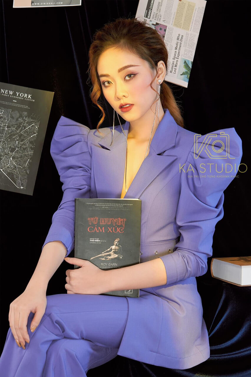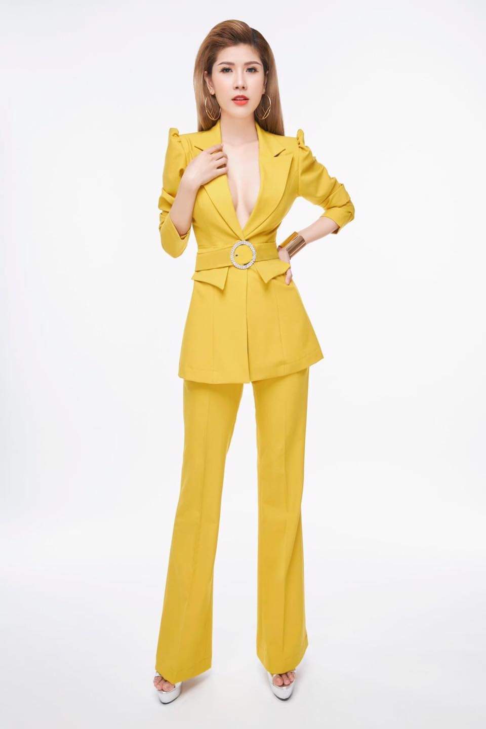 Vest nữ doanh nhân vai áo nhọn quần suông phong cách