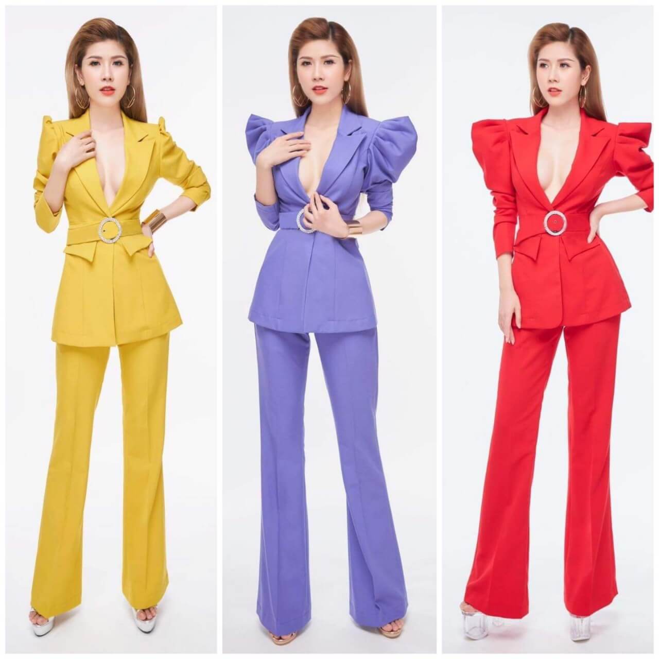 Vest nữ doanh nhân vai áo nhọn quần suông